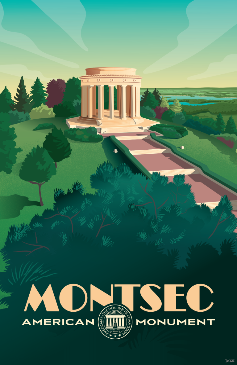 The World War I Montsec American Monument is located atop the Butte of Montsec, France, 12 miles southwest of St. Mihiel American Cemetery and 10 miles east of the town of St. Mihiel. The entrance to the memorial’s access road is immediately west of the center of Montsec Village, France. The Montsec Monument, is reached via Highways D 12 and D 119 to Montsec, then a road up the hill.