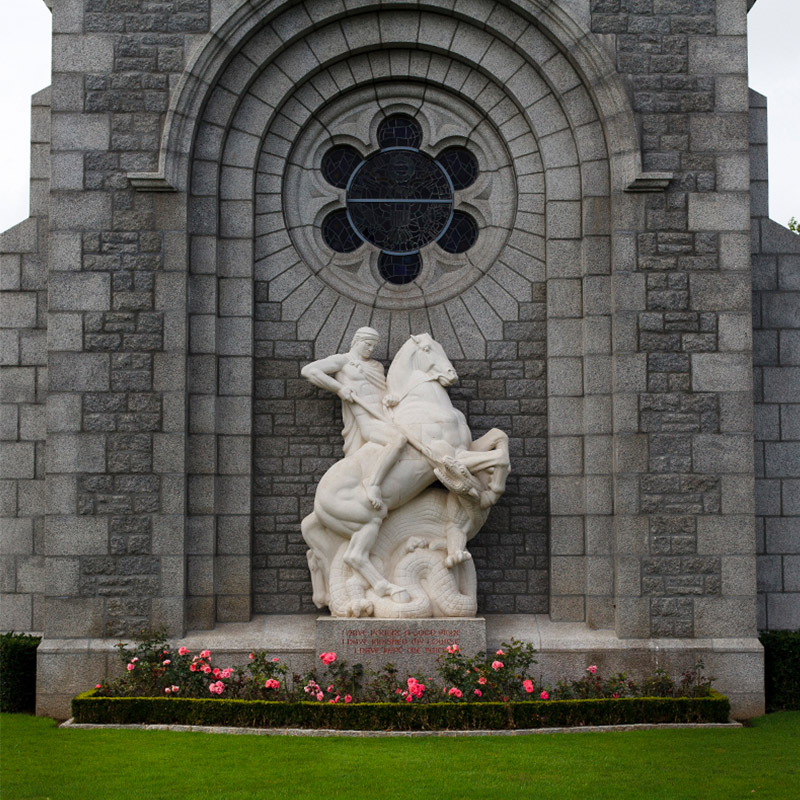 Along the retaining wall of the memorial terrace are inscribed the names of 500 of the missing. Rosettes mark the names of those since recovered and identified.