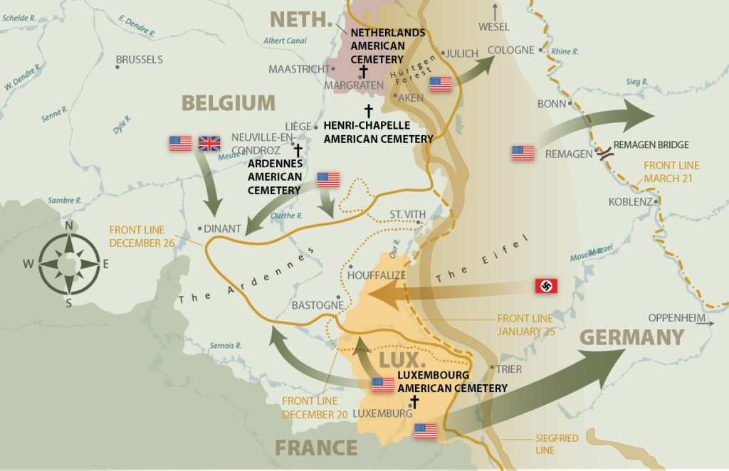 The cemetery possesses great military historic significance as it holds fallen Americans of two major efforts, one covering the U.S. First Army’s drive in September 1944 through northern France, Belgium, Holland and Luxembourg into Germany, and the second covering the Battle of the Bulge. It was from the temporary cemetery at Henri-Chapelle that the first shipments of remains of American war dead were returned to the United States for permanent burial. The repatriation program began on July 27, 1947 at a special ceremony at the cemetery when the disinterment began. The first shipment of 5,600 American war dead from Henri-Chapelle left Antwerp, Belgium the first week of October 1947. An impressive ceremony was held, with over 30,000 Belgian citizens attending, along with representatives of the Belgium government and senior Americans.