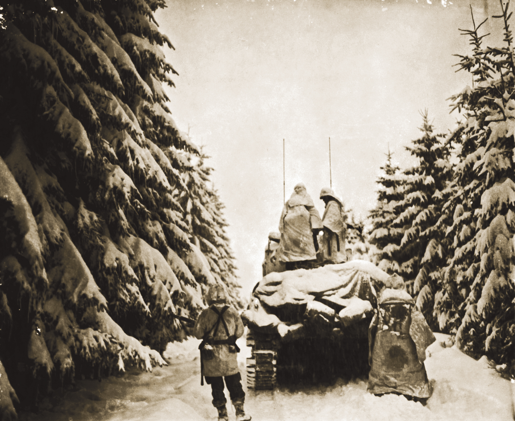 82nd Airborne Division soldiers advance in Battle of the Bulge.