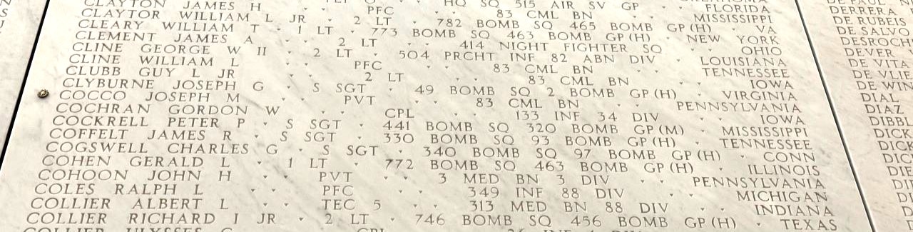 A bronze rosette is placed next to the name of Joseph M. Cocco