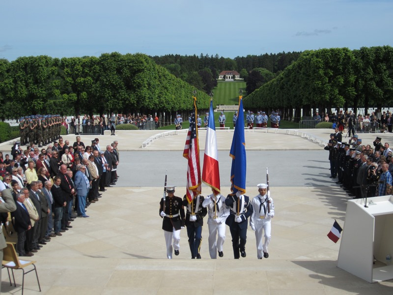 A U.S. Color Guard takes their place at the start of the 2014 Memorial Day Ceremony at Meuse-Argonne American Cemetery in France.
