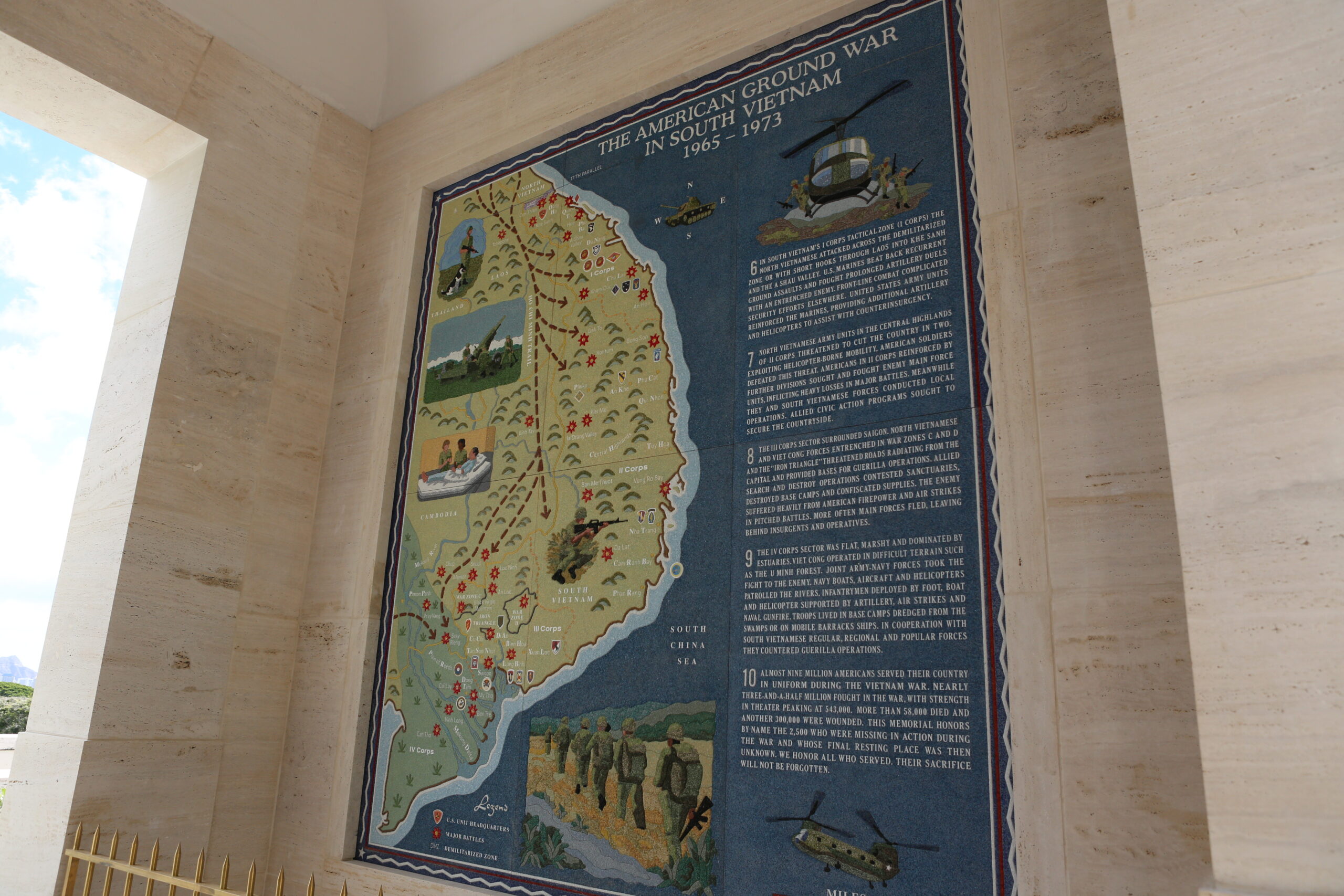 A concrete mosaic map at the Honolulu Memorial shows the ground war in south Vietnam.