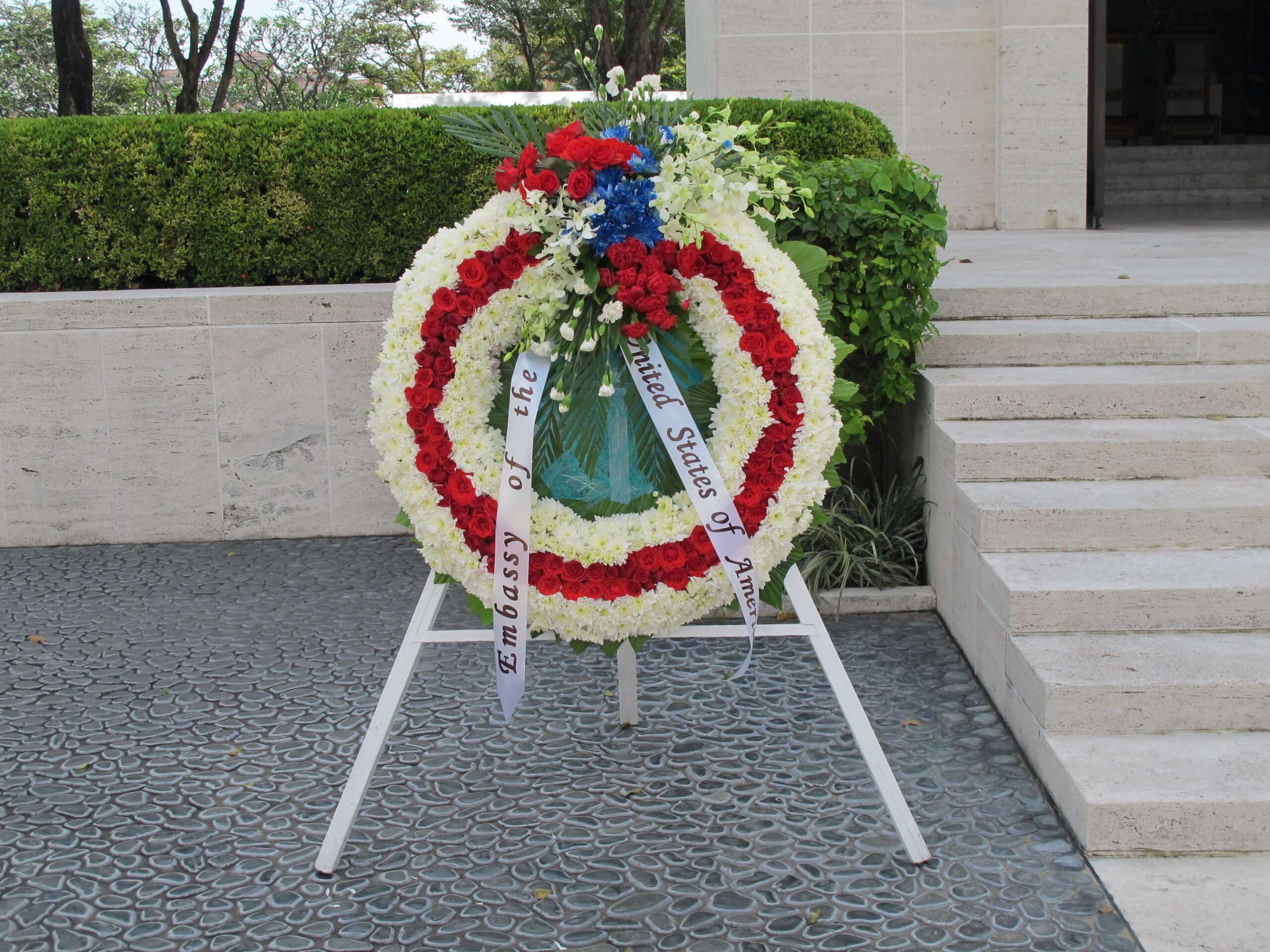 A floral wreath from the Embassy of the United States.