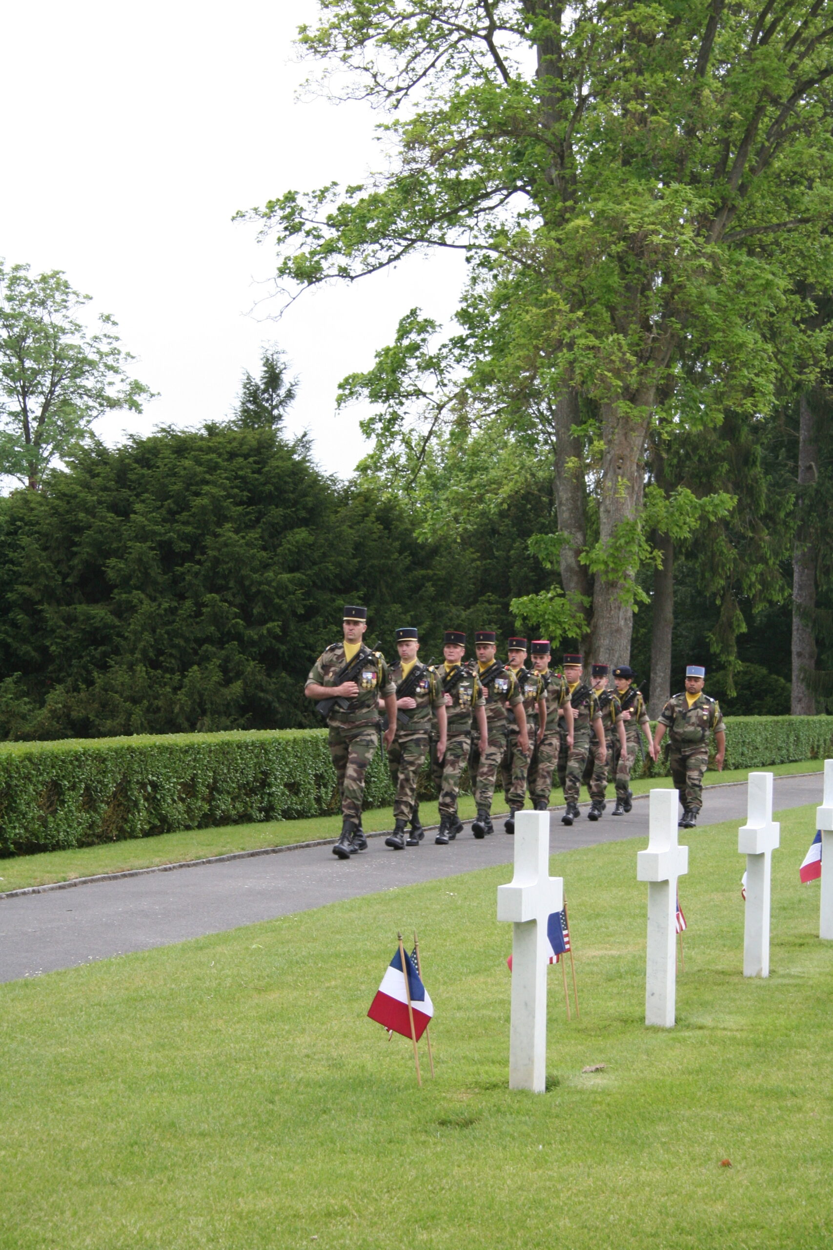 A French Honor Platoon marches out during the Memorial Day 2015 Ceremony at Oise-Aisne American Cemetery