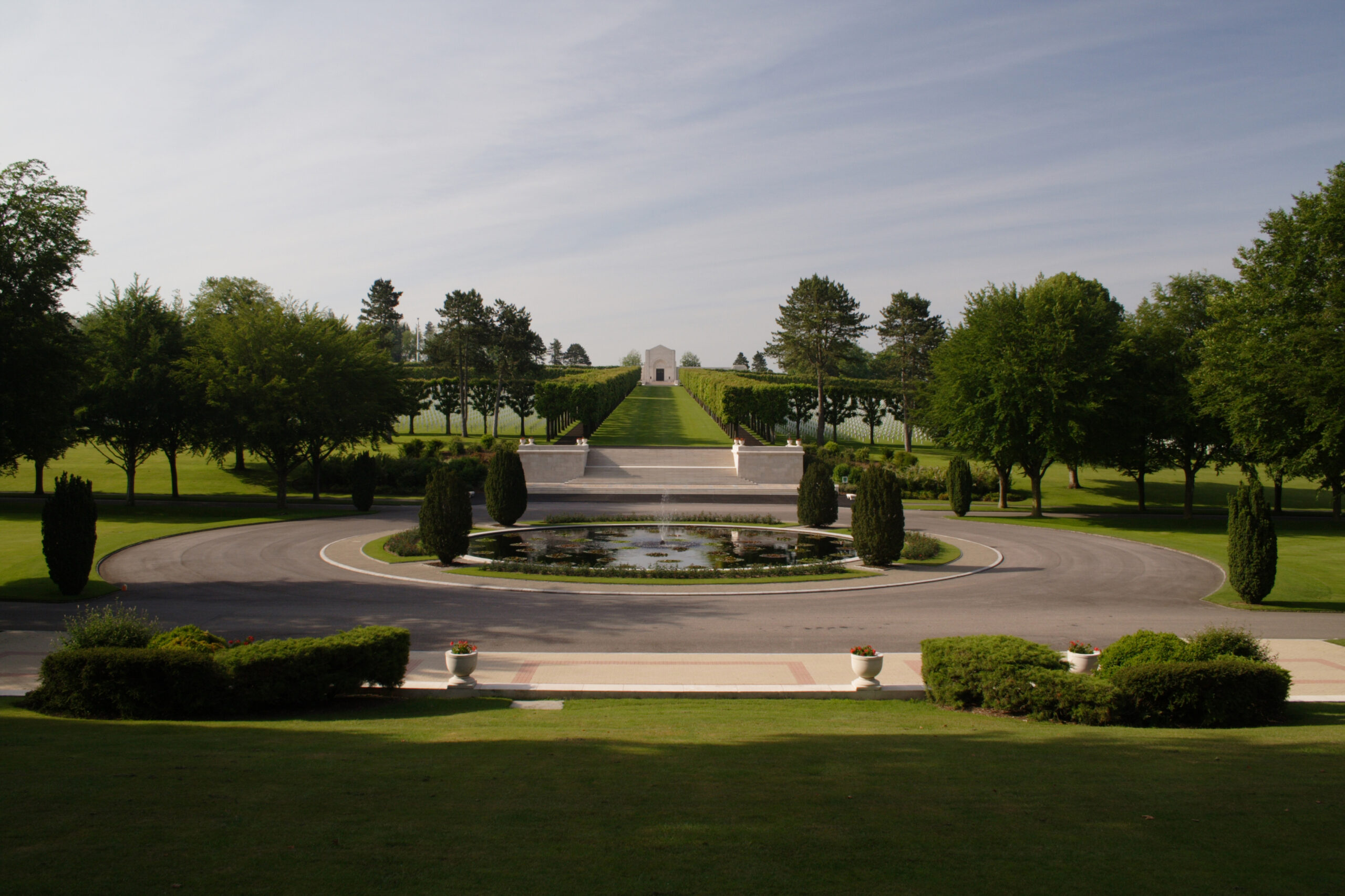 A long path leads to the chapel at Meuse-Argonne American Cemetery.