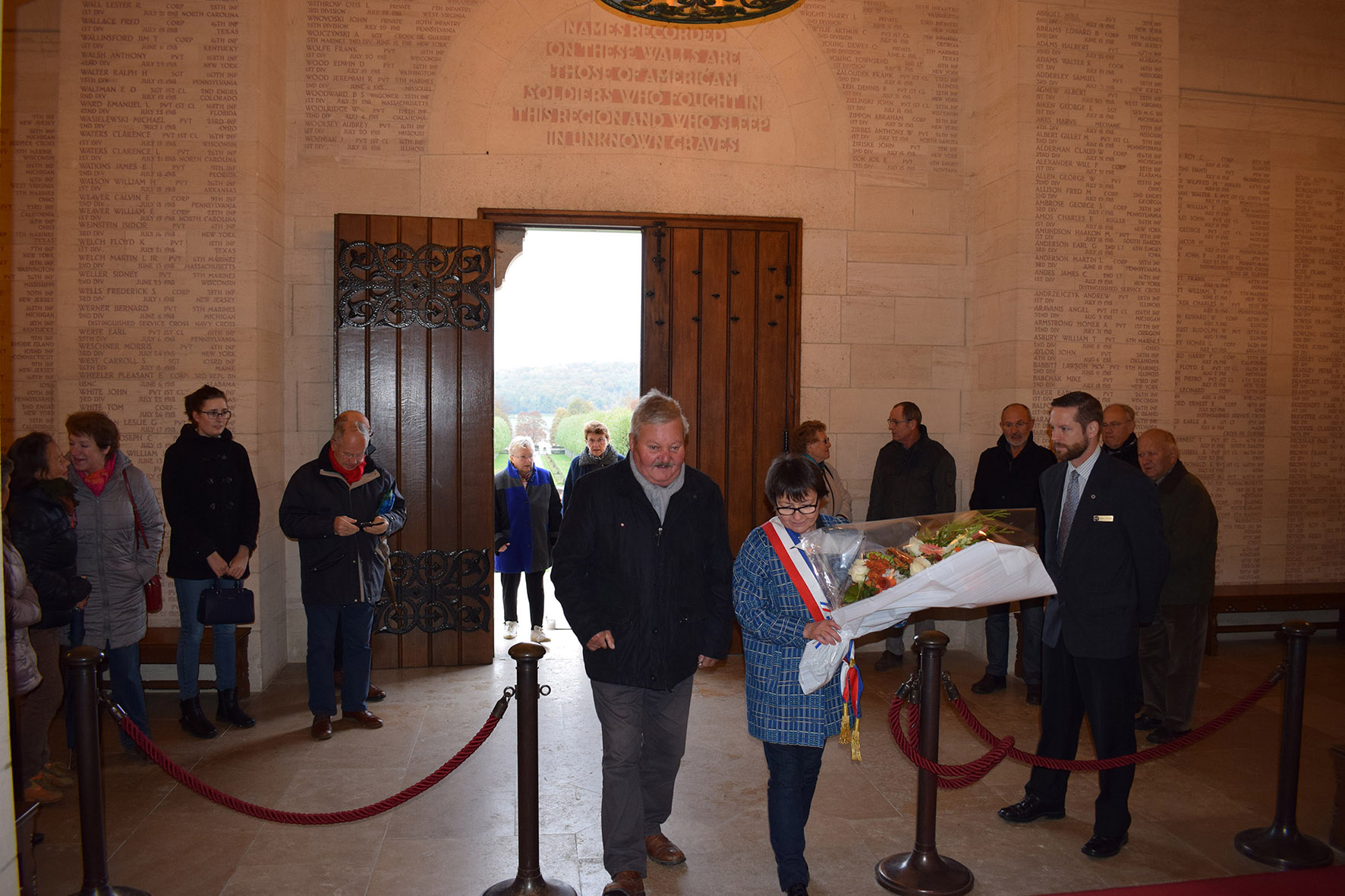 Mayor of Belleau Nadia Crapart lays a wreath in the chapel at Aisne-Marne American Cemetery on Veterans Day 2016.