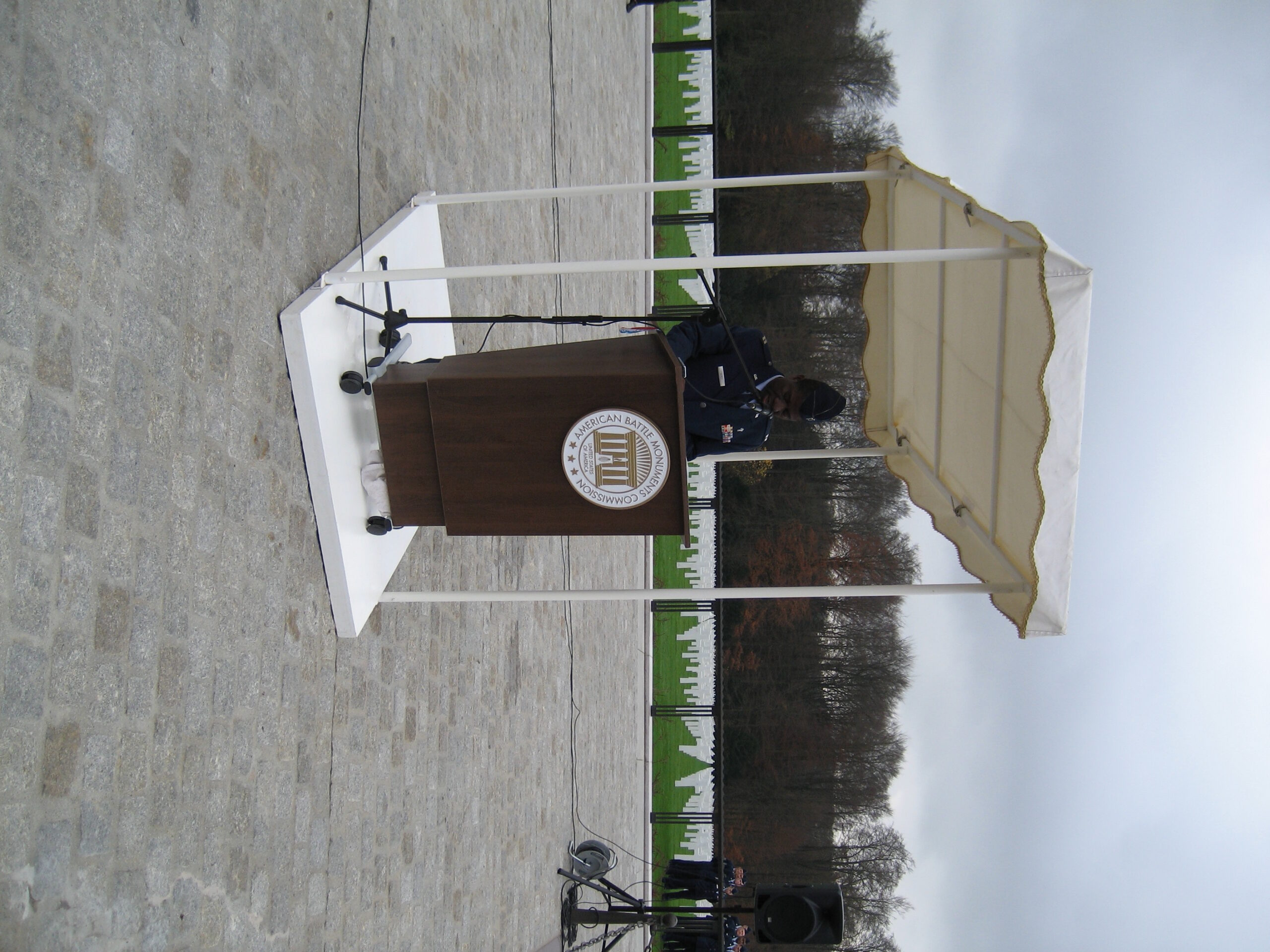 A member of the American military delivers remarks during the 2015 Veterans Day Ceremony at Luxembourg American Cemetery.