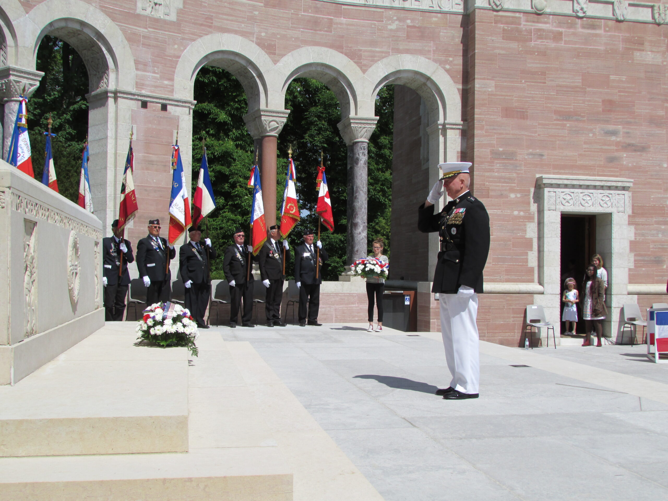 Lt. Gen. Hummer lays a wreath during the 2014 Memorial Day Ceremony at Oise-Aisne American Cemetery in France.