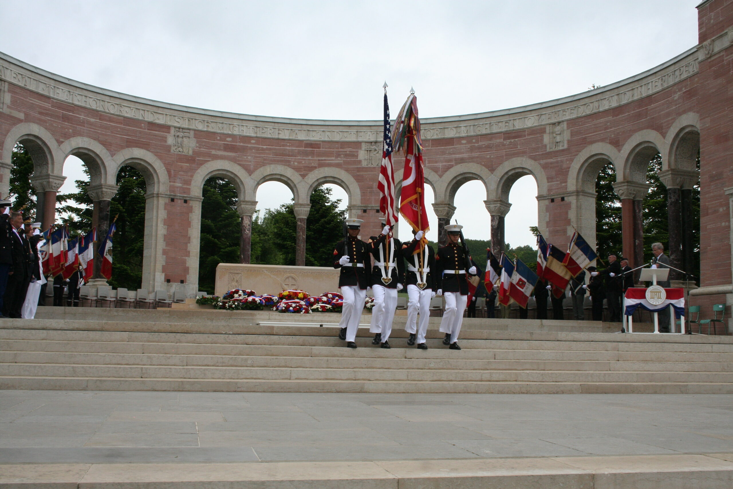 The colors are retired during the Memorial Day 2015 Ceremony at Oise-Aisne American Cemetery.