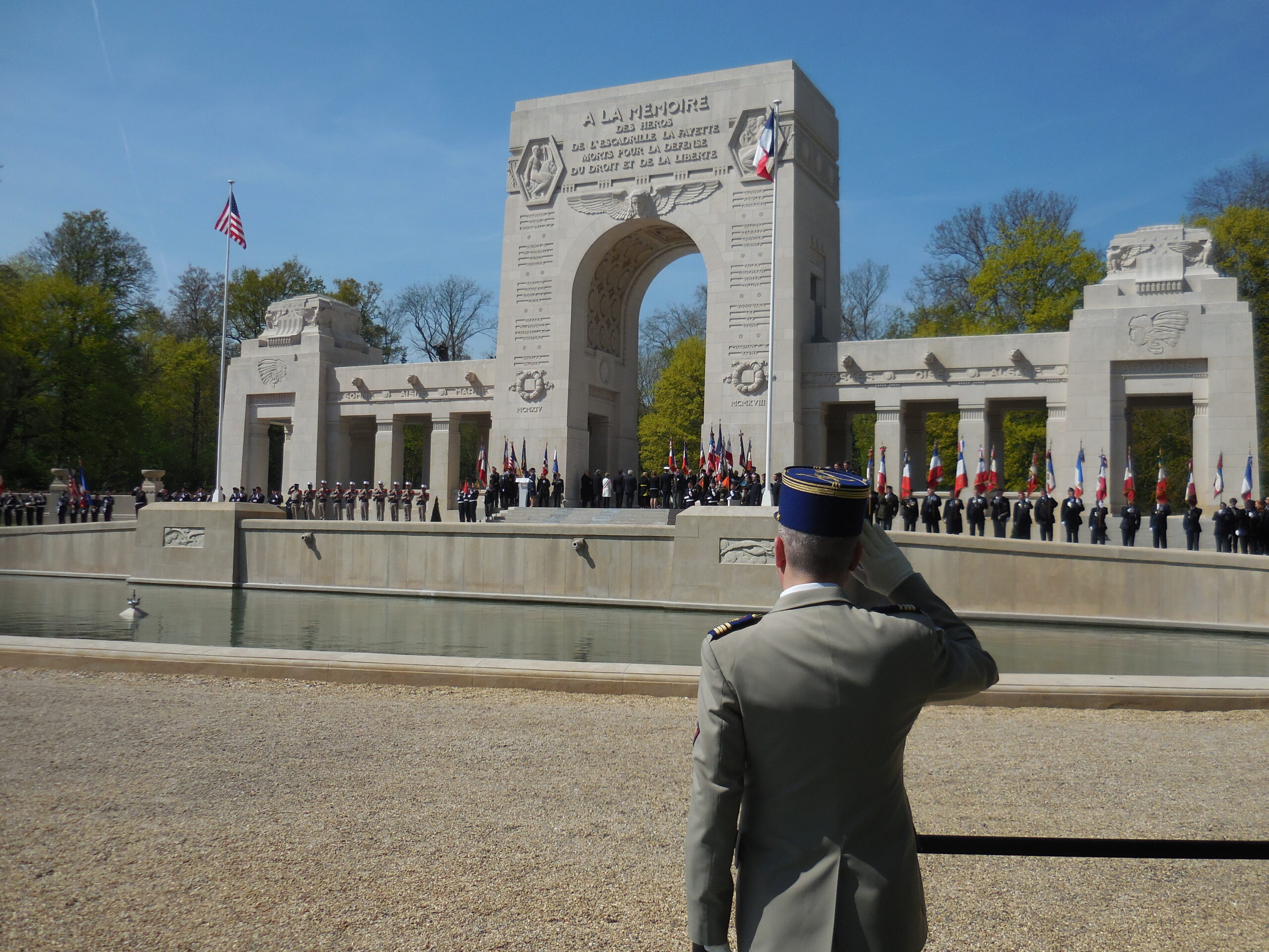 French and American officials gathered today at the Lafayette Escadrille Memorial outside of Paris to mark the 100th anniversary of the creation of the Lafayette Escadrille aeronautical unit of World War I.