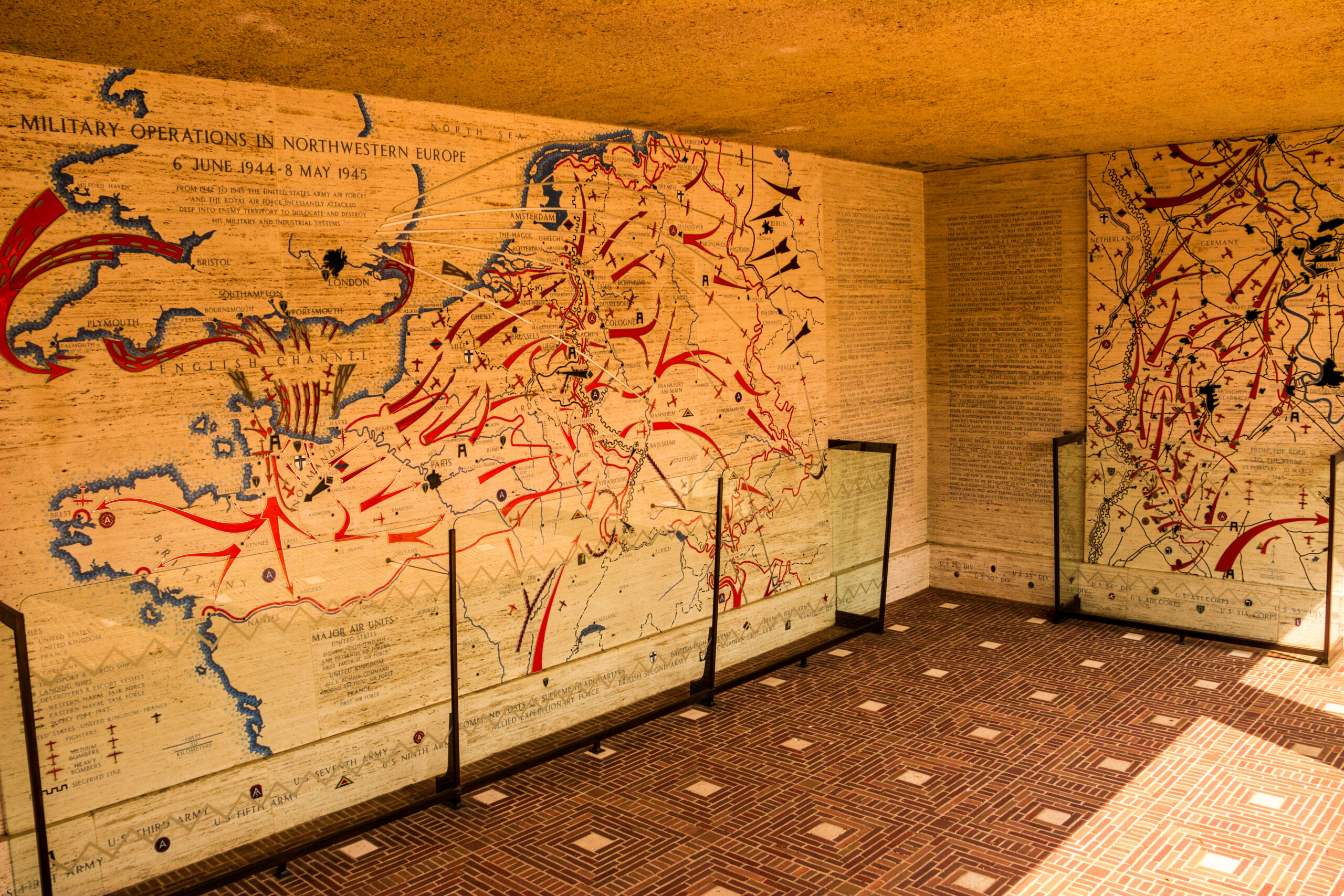 Military operations in northwestern Europe are shown via a battle map at Netherlands American Cemetery.