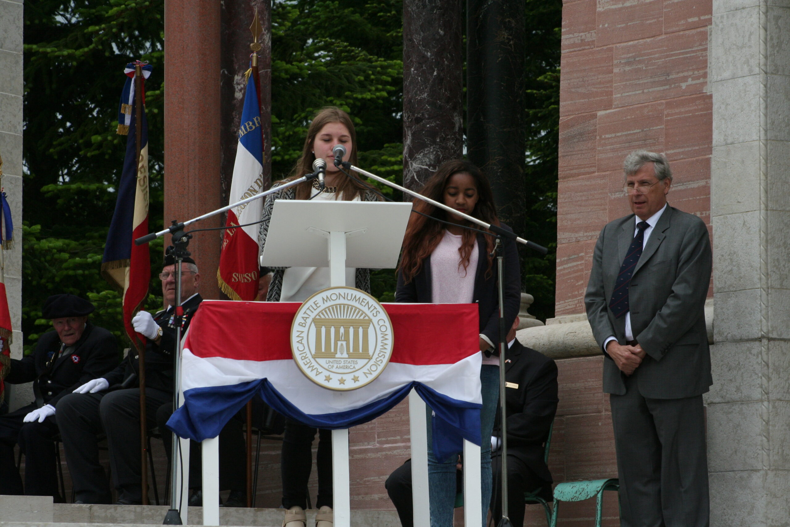 French students from St. Joseph’s High School read their poems “When Peace Returns” during the Memorial Day 2015 Ceremony at Oise-Aisne American Cemetery.