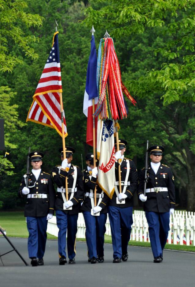 A U.S. military color guard participates in the 2015 Memorial Day Ceremony at Lorraine American Cemetery. Image courtesy of to Eric Jawurek.