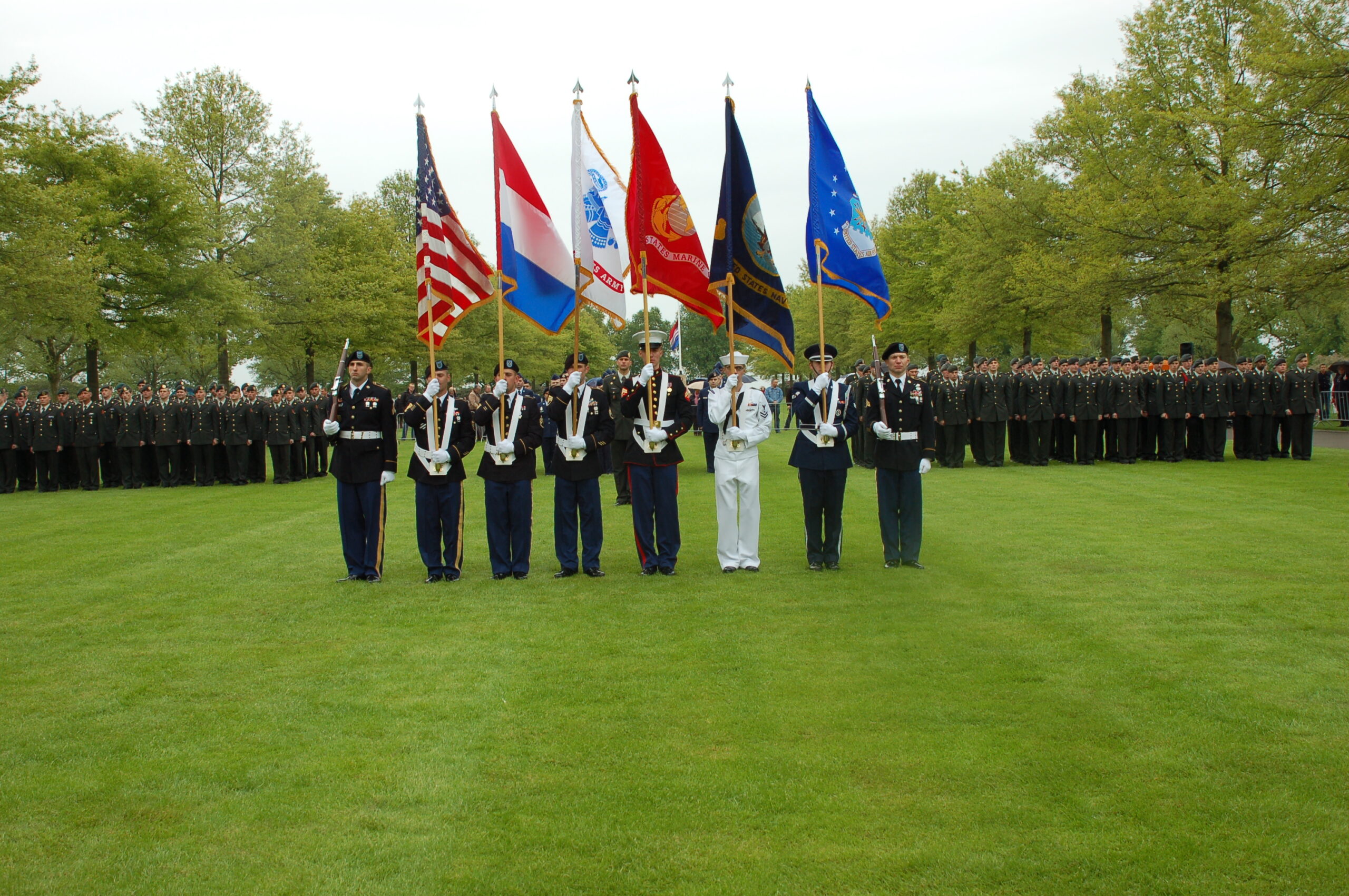A U.S. Color Guard participates in the 2013 Memorial Day ceremony at Netherlands American Cemetery.