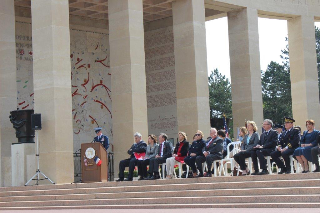 A U.S. military official delivers remarks during the 2015 Memorial Day Ceremony at Normandy American Cemetery.