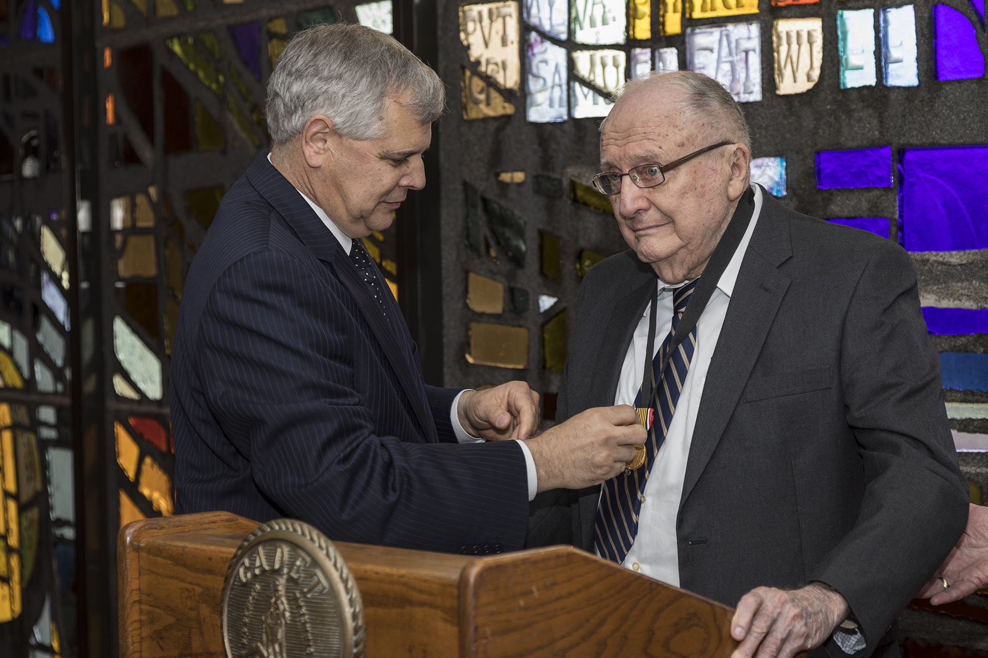 ABMC Acting Secretary Robert J. Dalessandro presents award to John J. Marsh.