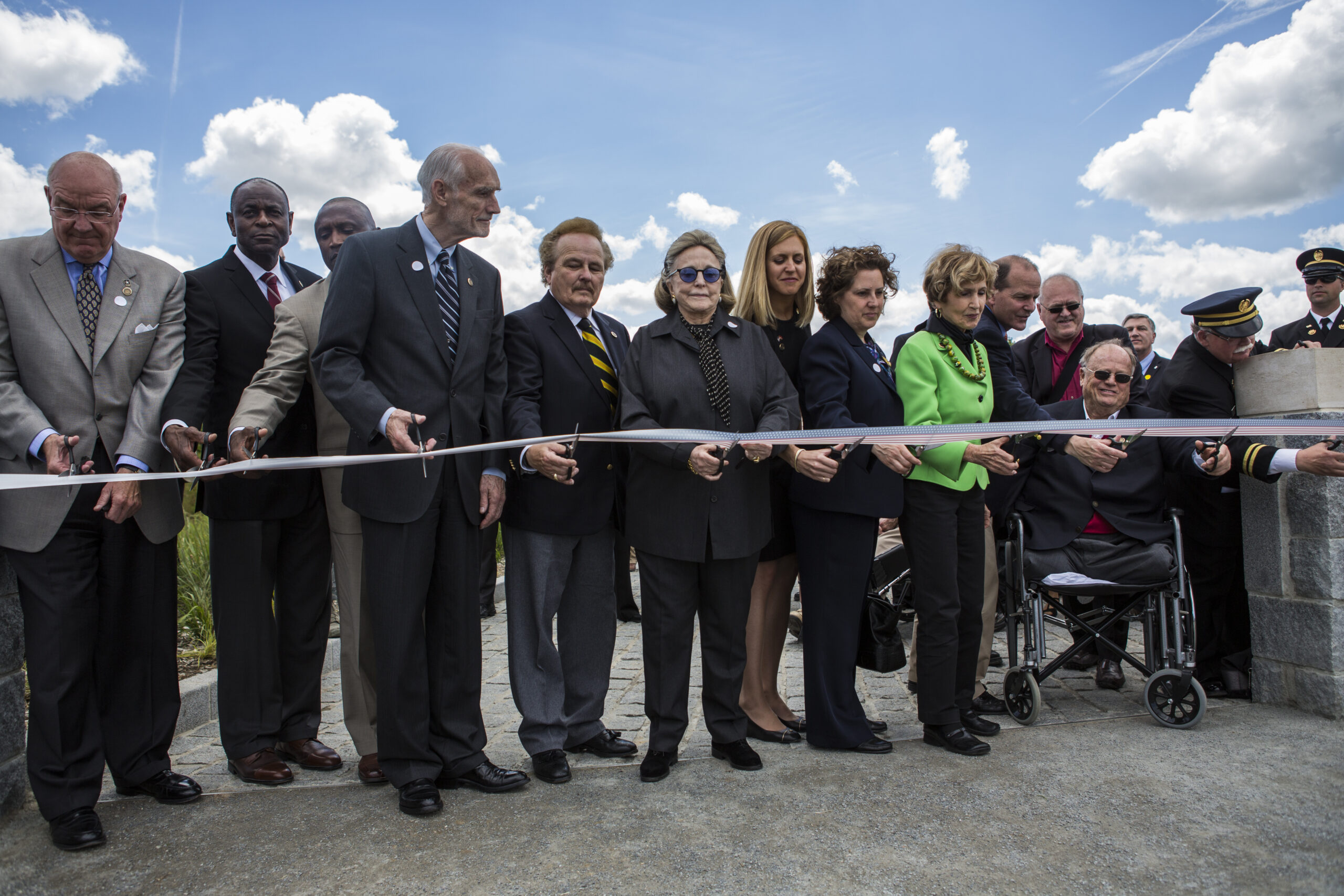 ABMC Commissioners cut a ribbon to dedicate the new visitor center.
