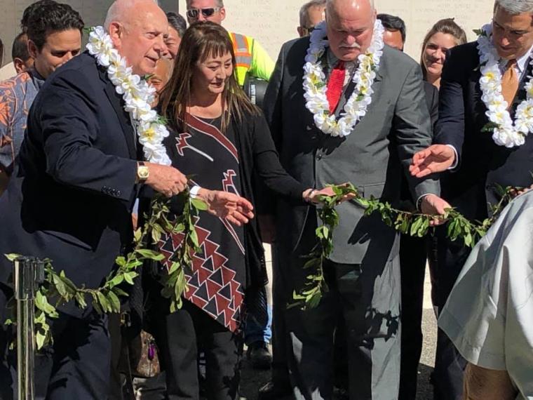 ABMC Secretary William M. Matz, Tammy Luke, project manager for the U.S. Army Corps of Engineers, VA Under Secretary for Memorial Affairs Randy Reeves and DPAA Director Kelly McKeague officially rededicate the Courts of the Missing.