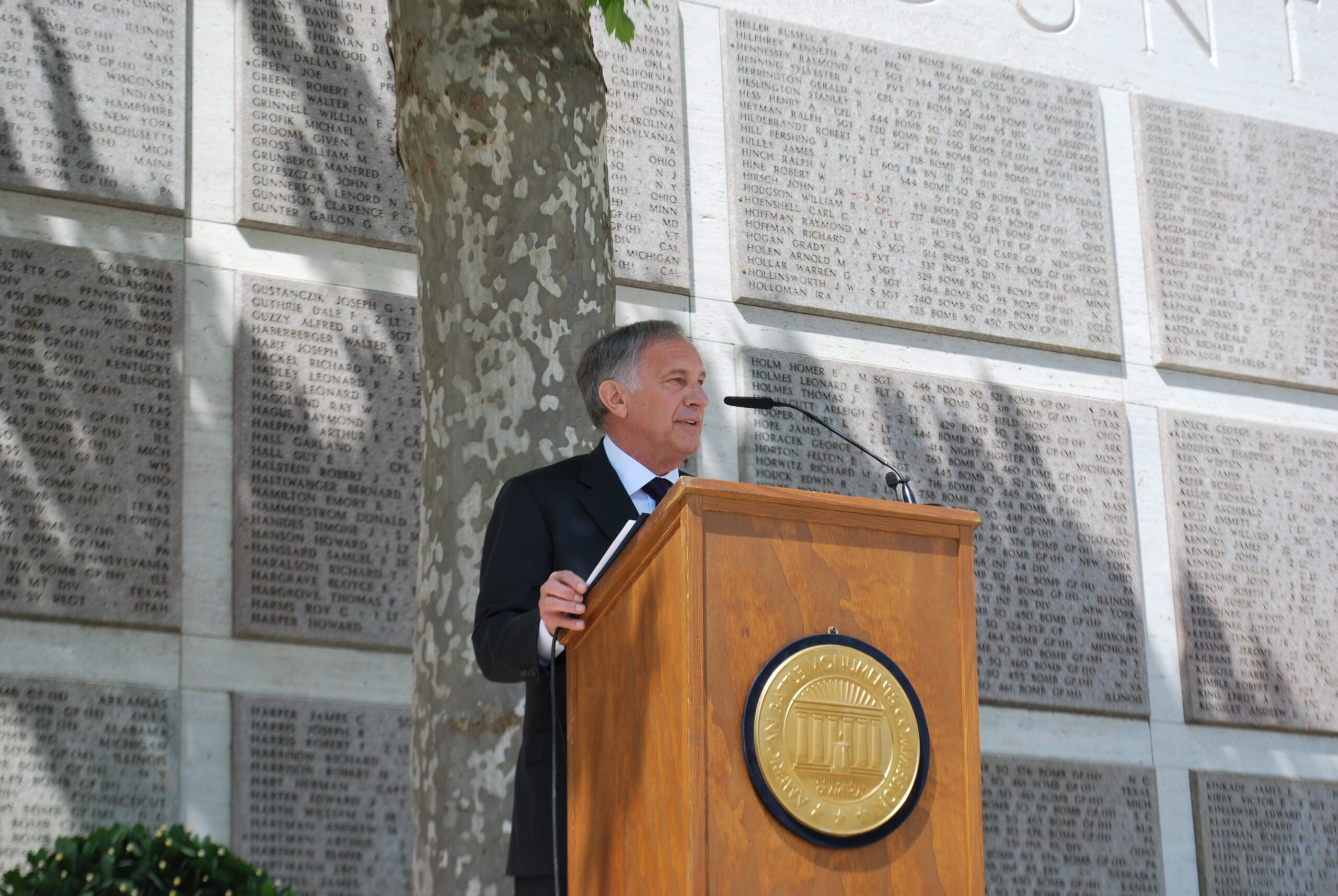 The U.S. Ambassador to Italy John R. Philips delivers remarks during the 2014 Memorial Day Ceremony at Florence American Cemetery in Italy.