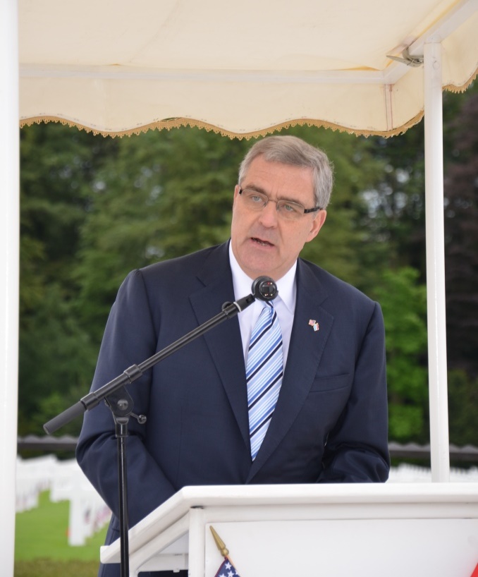U.S. Ambassador to NATO Douglas E. Lute delivers remarks during the 2014 Memorial Day Ceremony at Luxembourg American Cemetery.