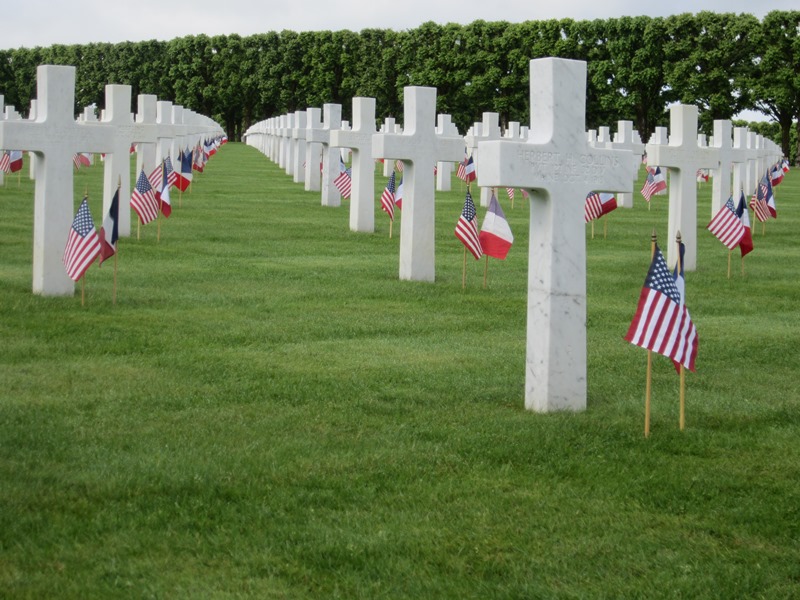 American and French flags are located at the base of every headstone.