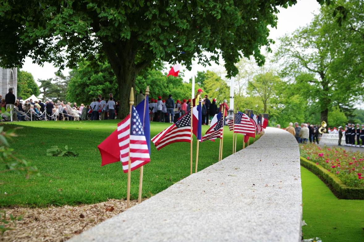 American and French flags could be seen throughout Brittany American Cemetery in France as part of the Memorial Day 2014 activities. Image courtesy of Arnaud Digard.