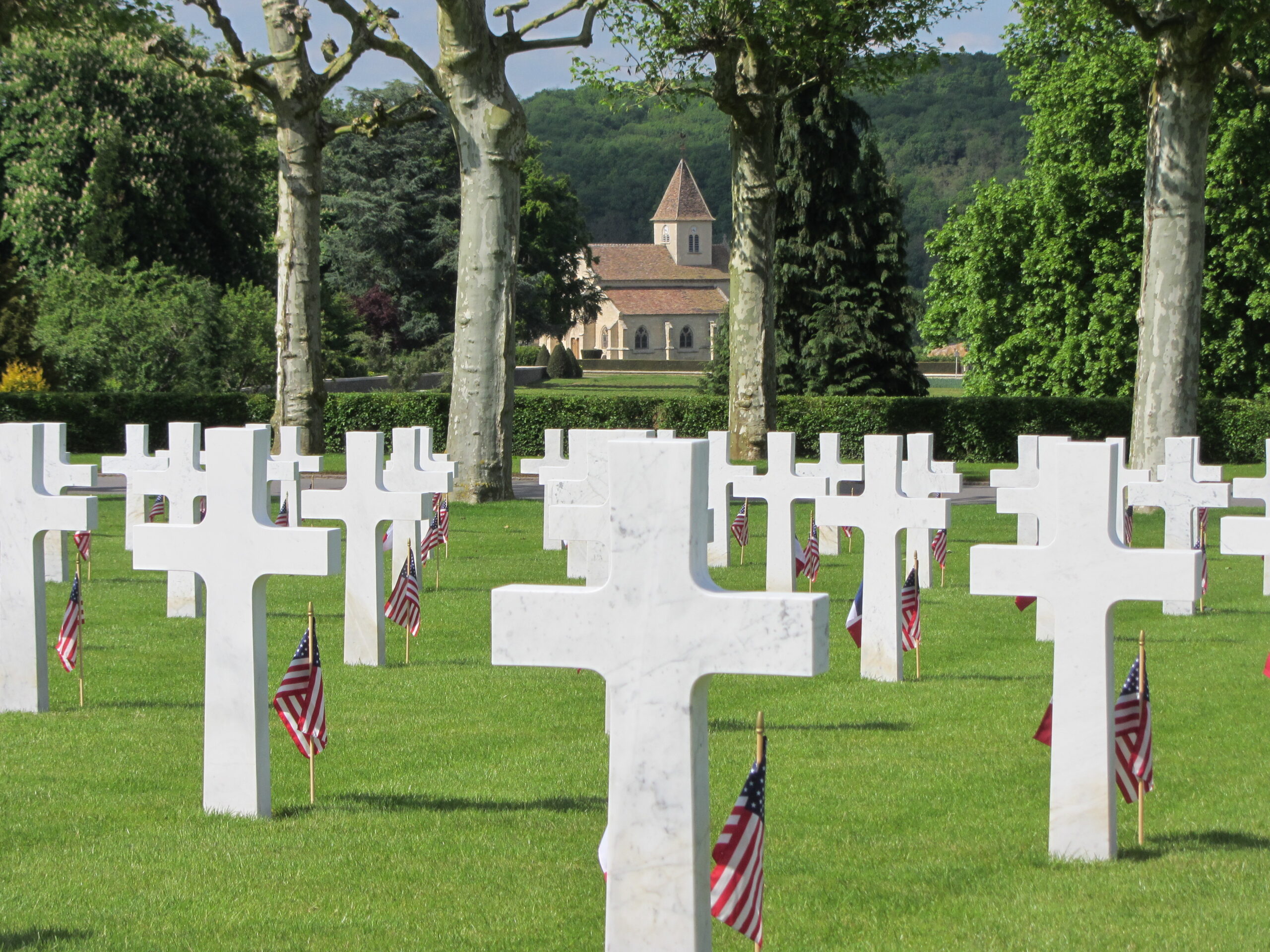 An American and French flag is placed in front of every headstone at Aisne-Marne American Cemetery for Memorial Day 2013.