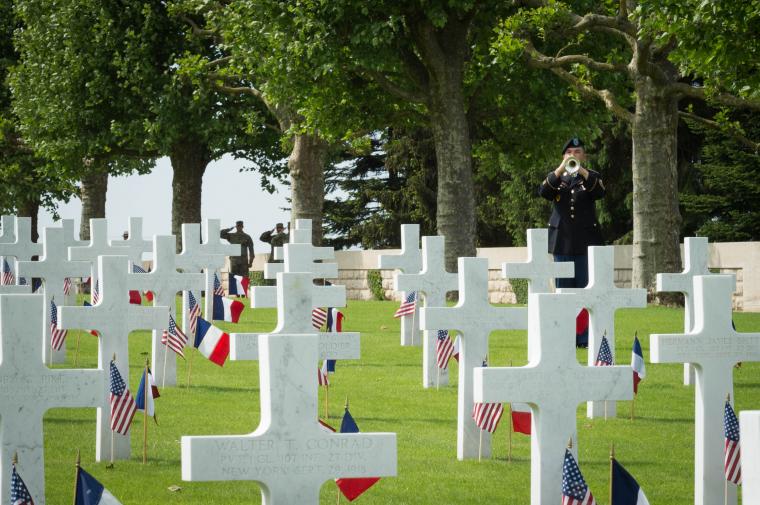 American and French flags were placed at every headstone at Somme American Cemetery. Photo credit: Chantal Mistral-Bernard/American Battle Monuments Commission.