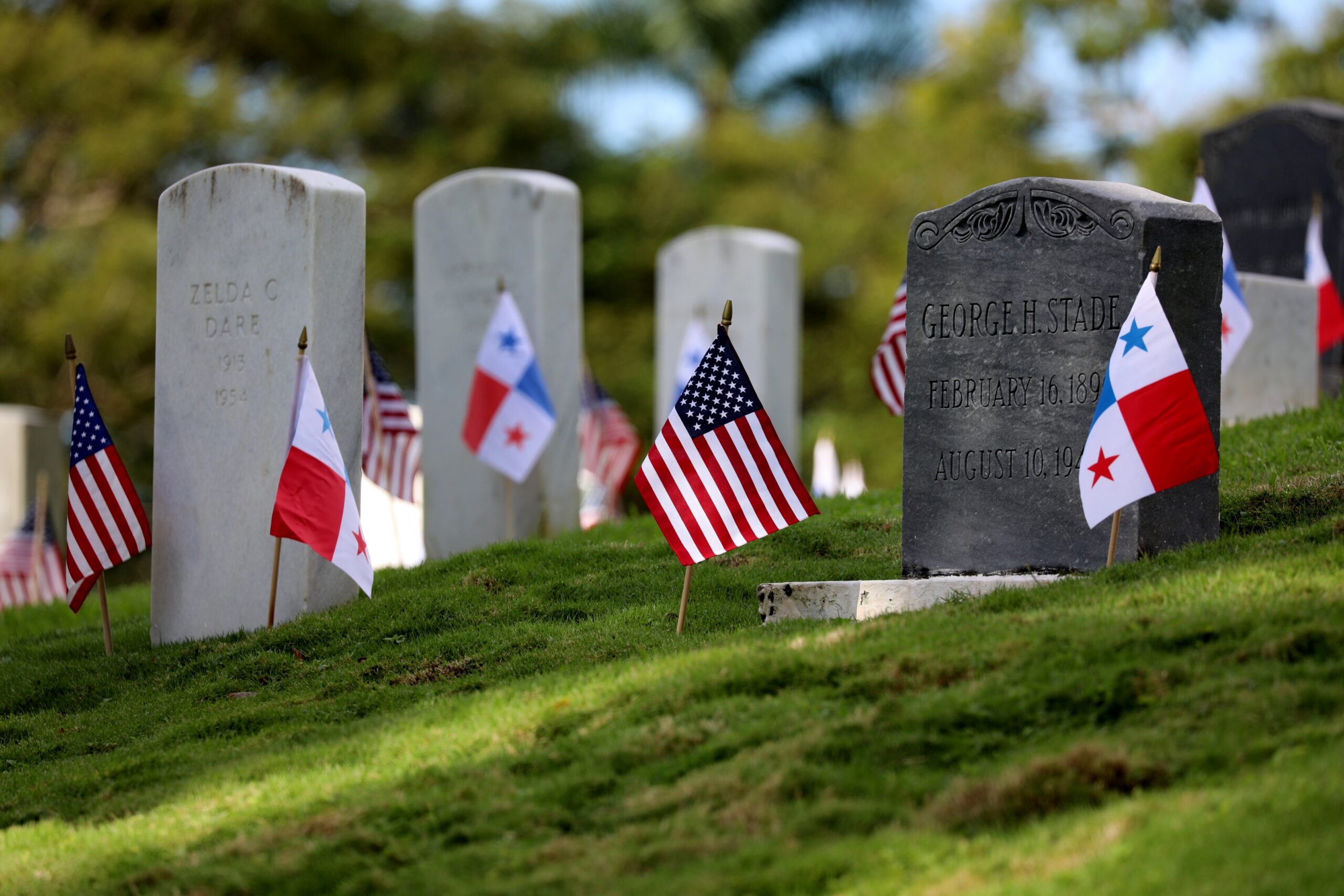 American and Panamanian flags were placed at every headstone for the 2018 Veterans Day Ceremony at Corozal American Cemetery in Panama. Image courtesy of U.S. Embassy Panama.
