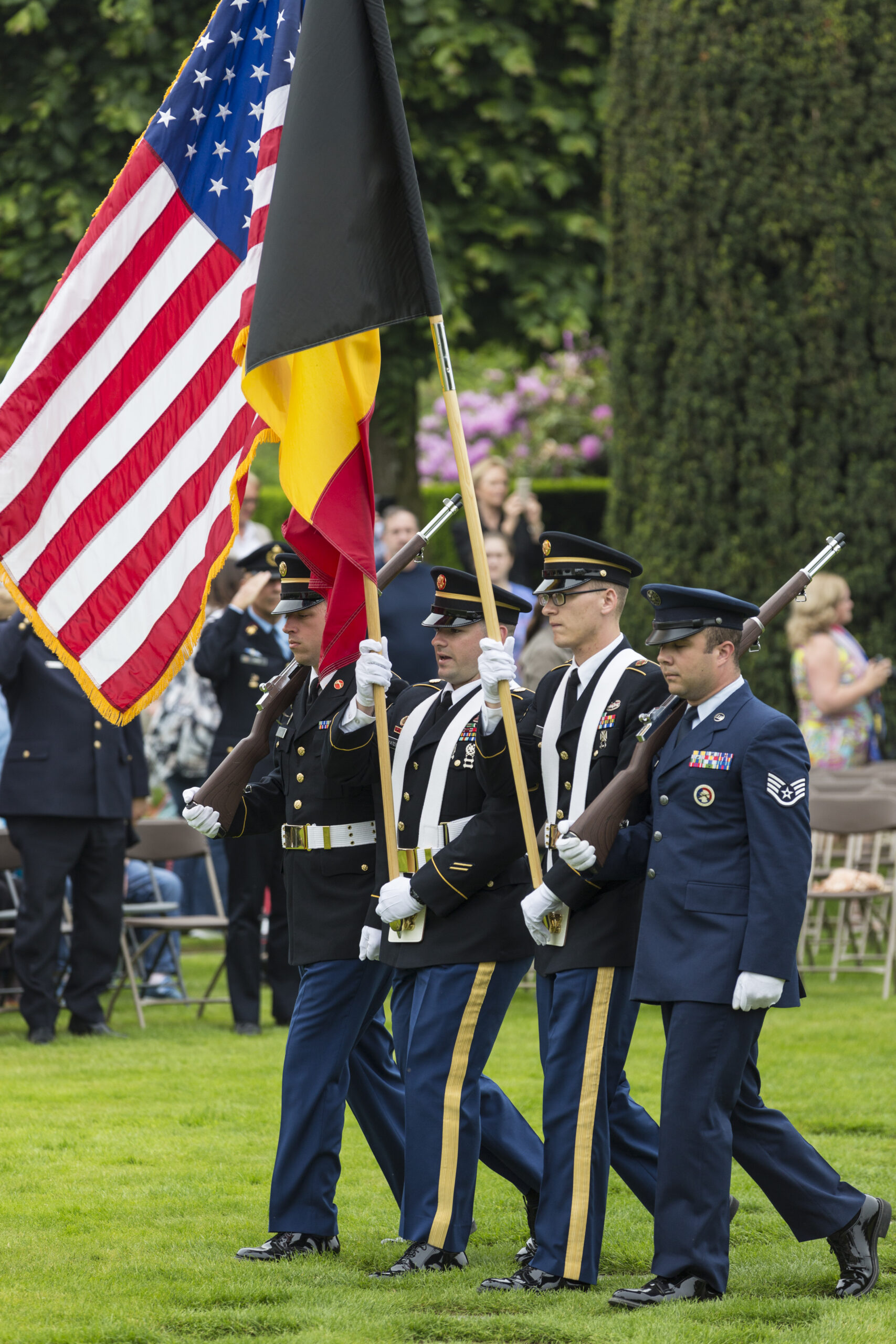 A U.S. Honor Guard participates in the 2016 Memorial Day Ceremony at Flanders Field American Cemetery.