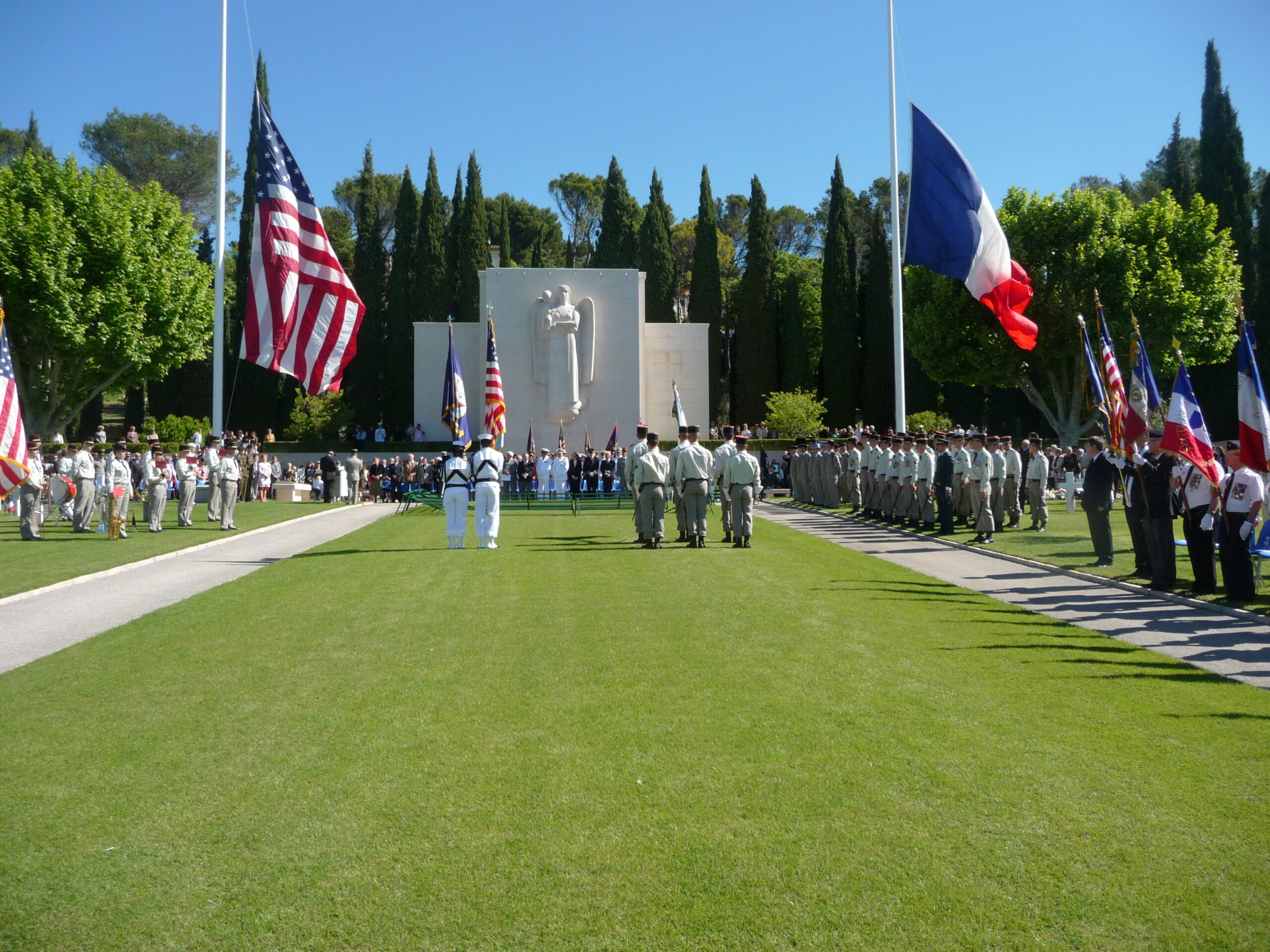 A large crowd gathered for the 2013 Memorial Day ceremony at Rhone American Cemetery in France.
