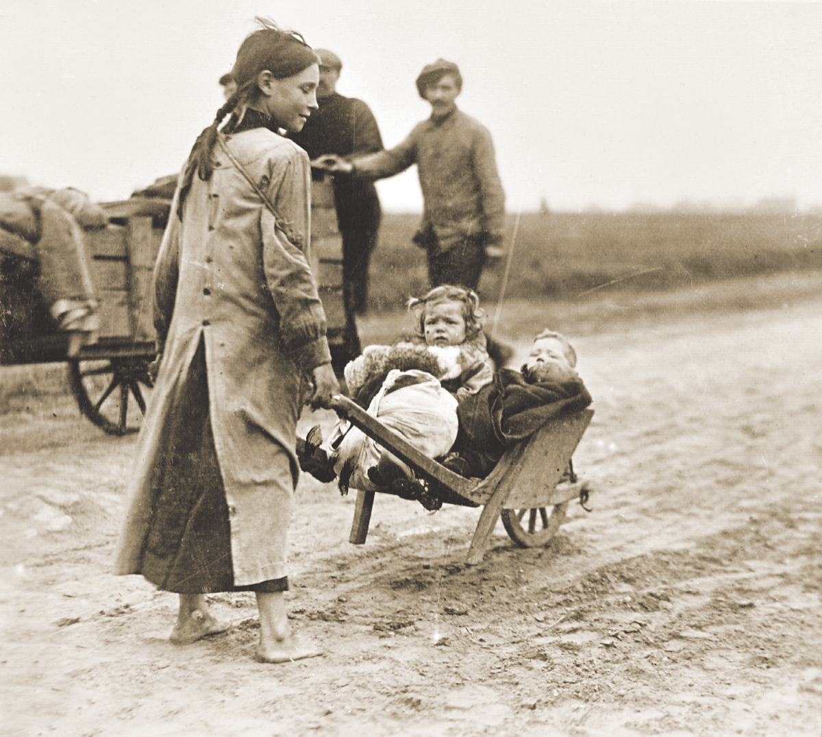 Belgian refugees walking toward Waregem