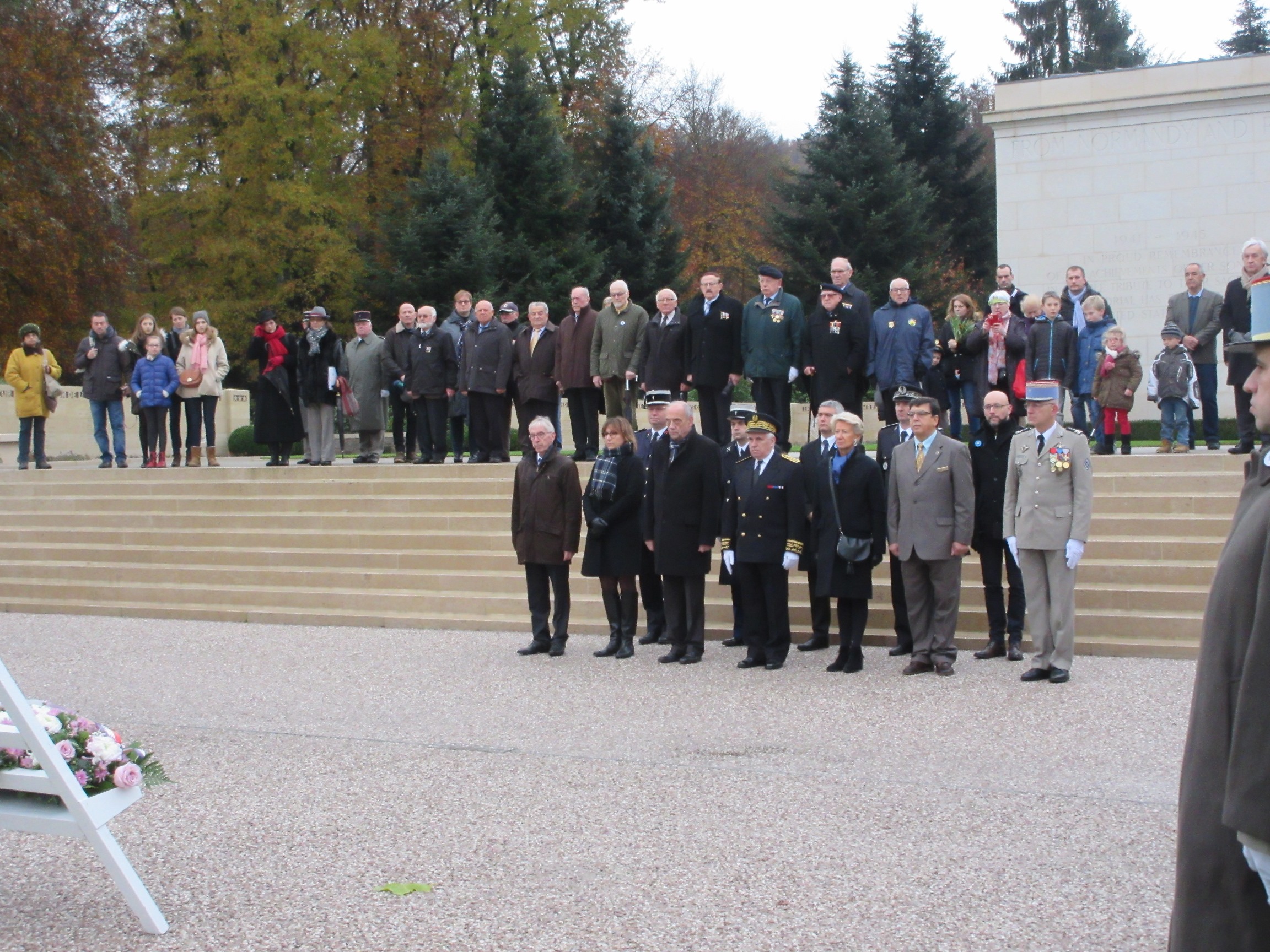 Members of the official party and attendees stand during the 2016 Veterans Day Ceremony at Epinal American Cemetery.