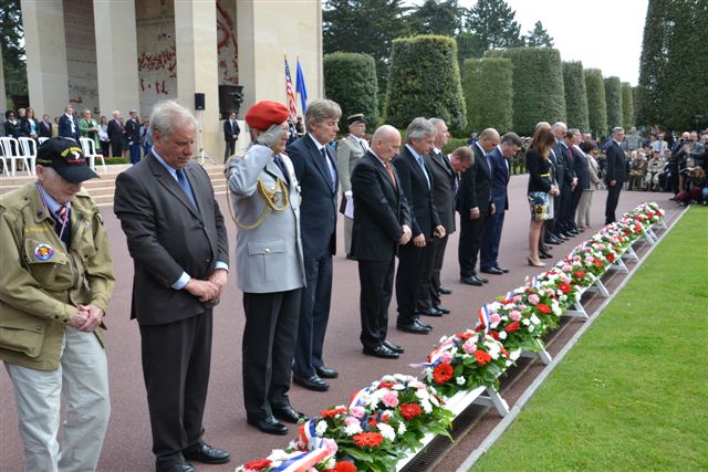 Participants lay wreaths during the 69th anniversary ceremony at Normandy American Cemetery to commemorate the D-Day landings.
