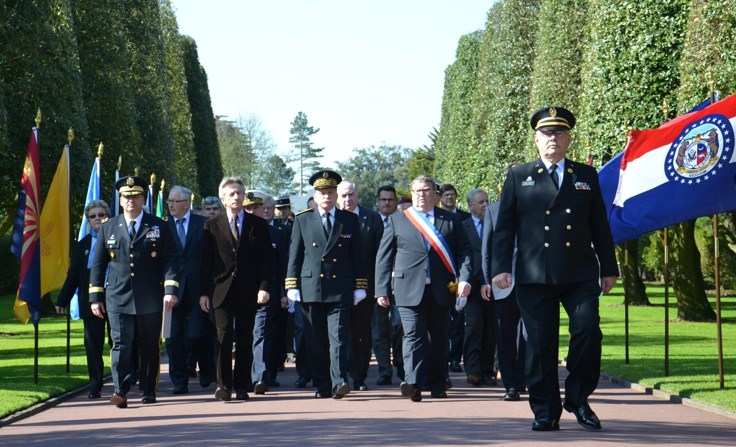 Ceremony participants walk into Normandy American Cemetery for the 2013 Memorial Day ceremony.