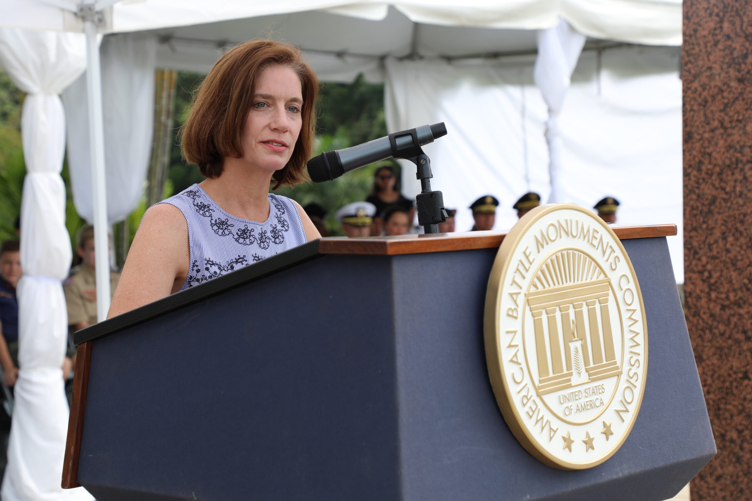 Chargé d’Affaires a.i. at U.S. Embassy Panama Roxanne Cabral delivers remarks during the 2018 Veterans Day Ceremony at Corozal American Cemetery. Image courtesy of U.S. Embassy Panama.