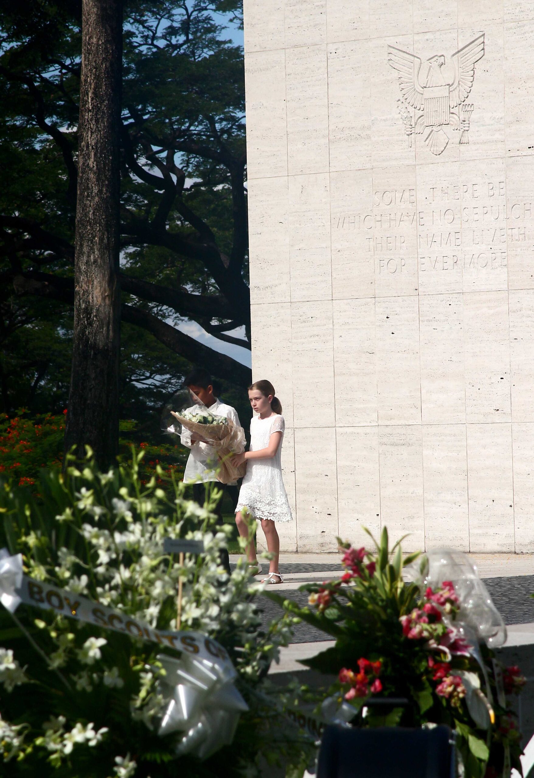 Children lay flowers during the 2014 Memorial Day Ceremony at Manila American Cemetery in the Philippines.