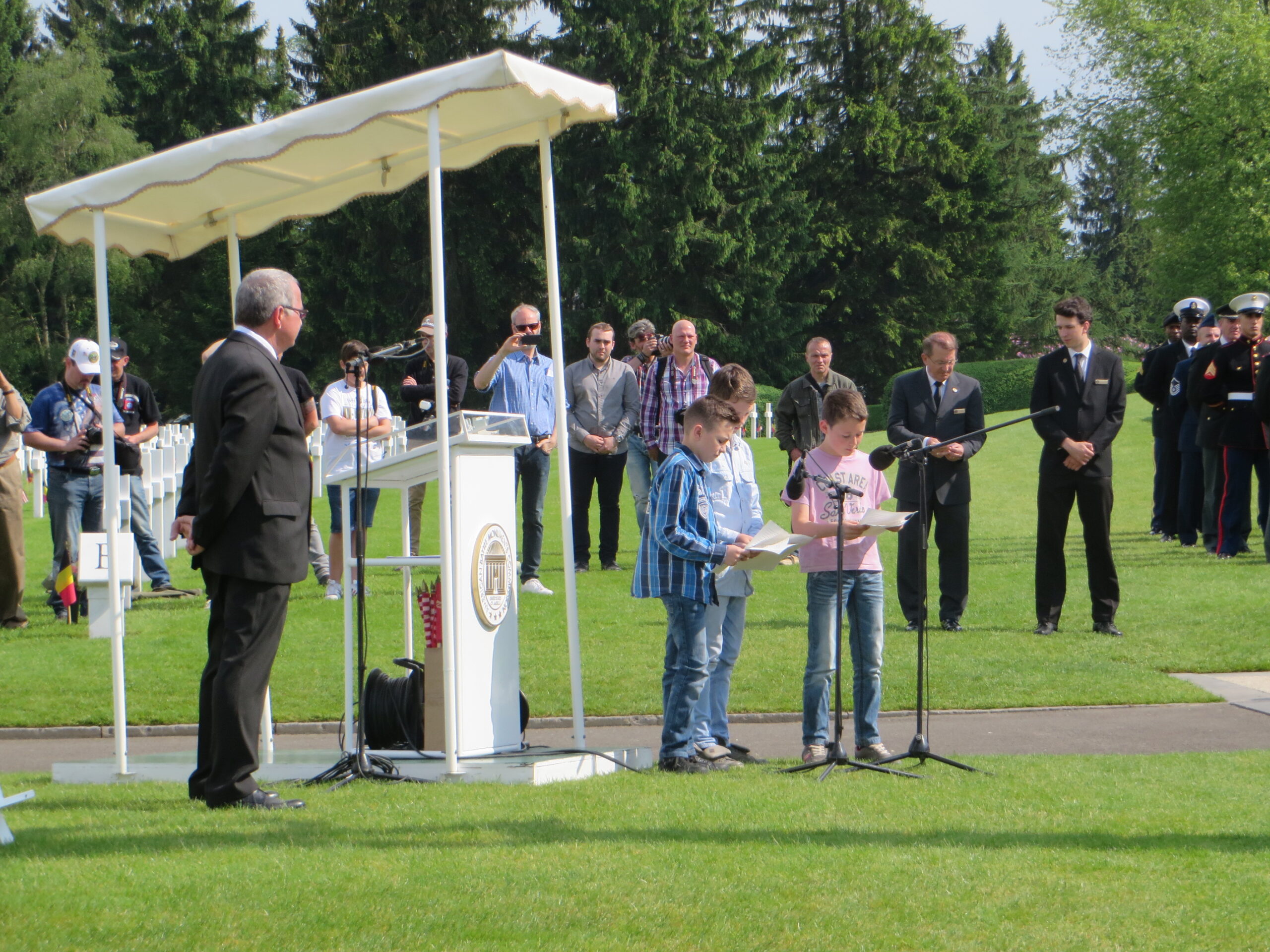 Students participate in the 2016 Memorial Day Ceremony at Henri-Chapelle American Cemetery.