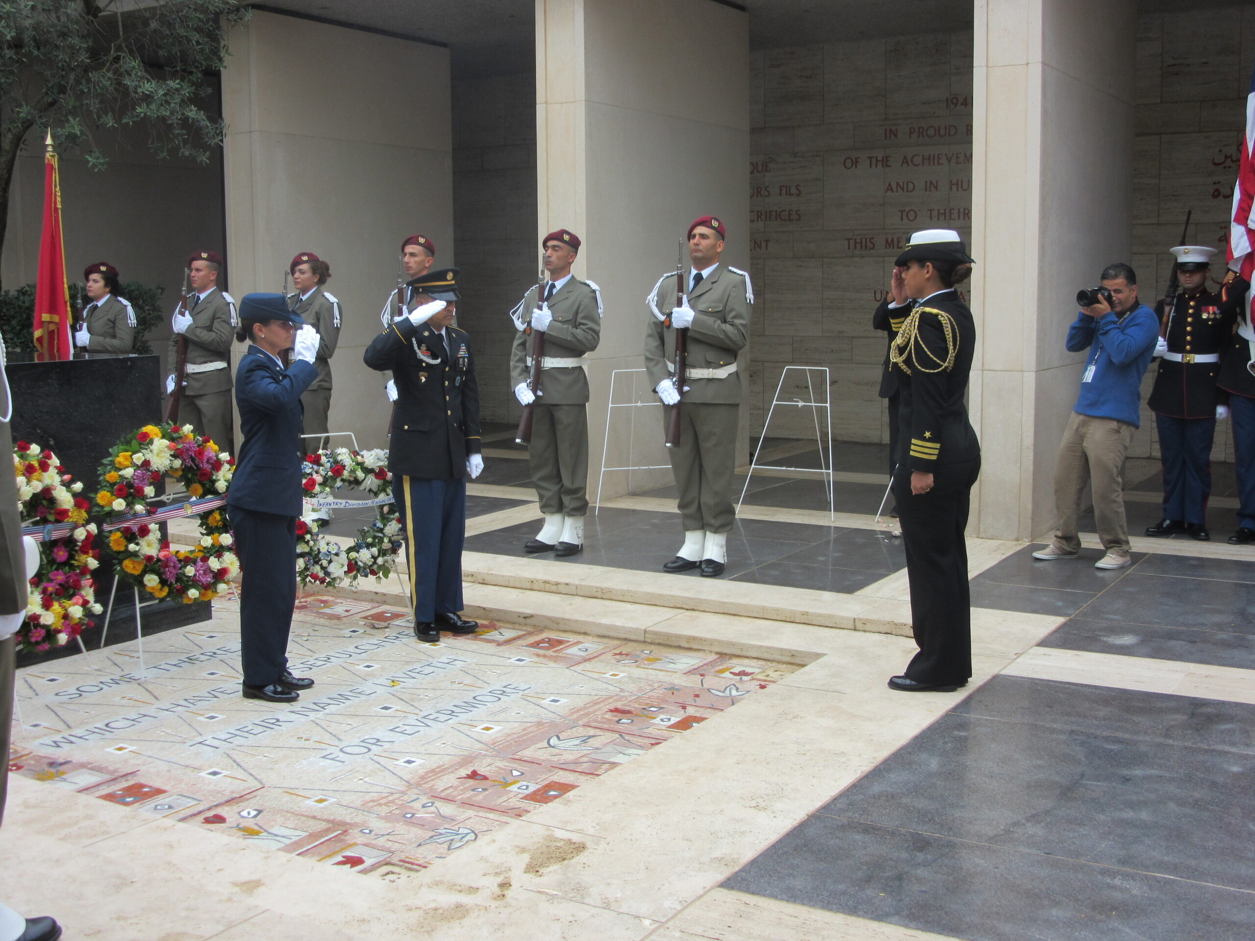 CMD Mollet lays a wreath on behalf of the 34th Infantry Division during the 2015 Veterans Day Ceremony at North Africa American Cemetery.