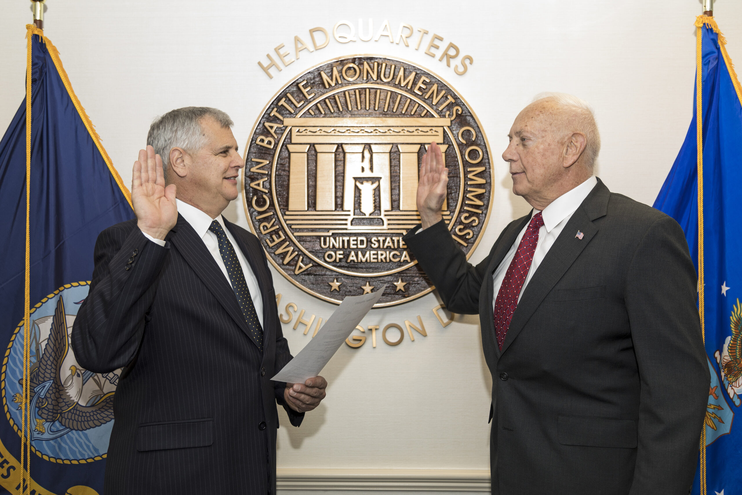 Deputy Secretary Robert J. Dalessandro (left) swore in retired Maj. Gen. William M. Matz