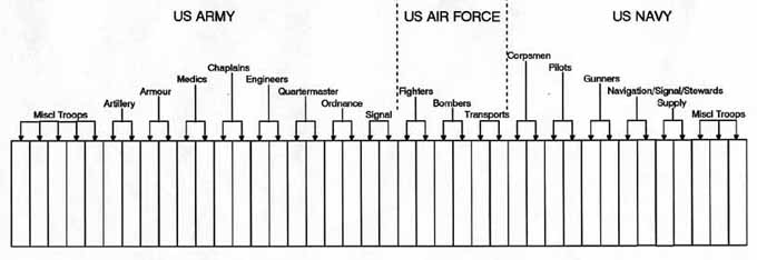 Diagram of mural wall shows placement of etchings and the corresponding services represented.