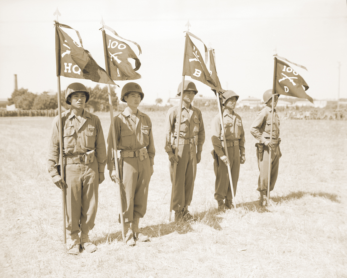 Guidons of the 100th Infantry Battalion, 442nd Regimental Combat Team, July 27, 1944.