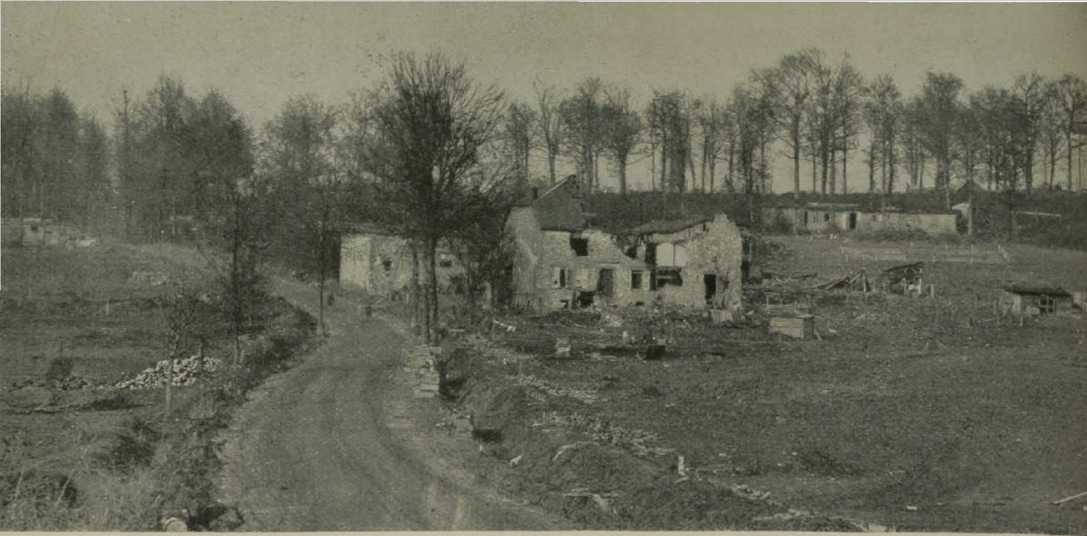 Historic image showing destroyed Madelein Farm in France.