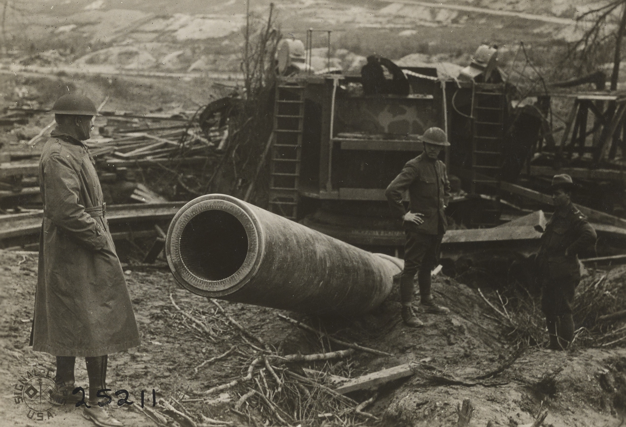 Historic photos shows large, captured piece of German artillery.