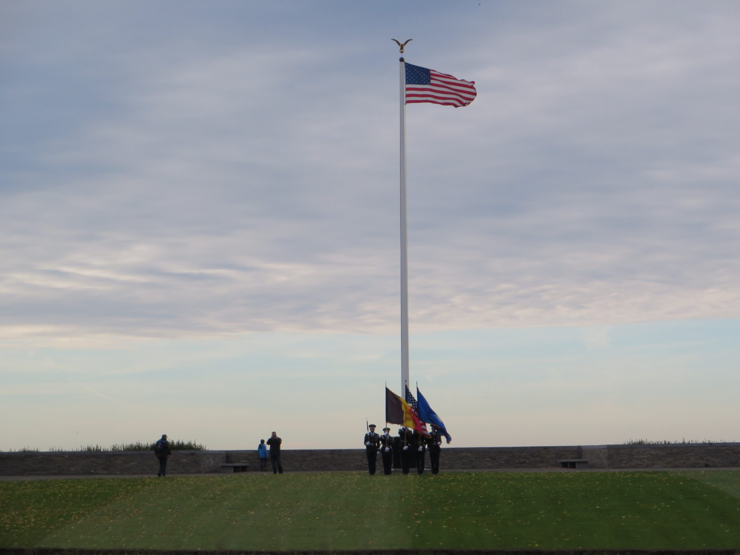 A U.S. Honor Guard stands at the flag pole at Henri-Chapelle American Cemetery during the 2014 Veterans Day Ceremony.