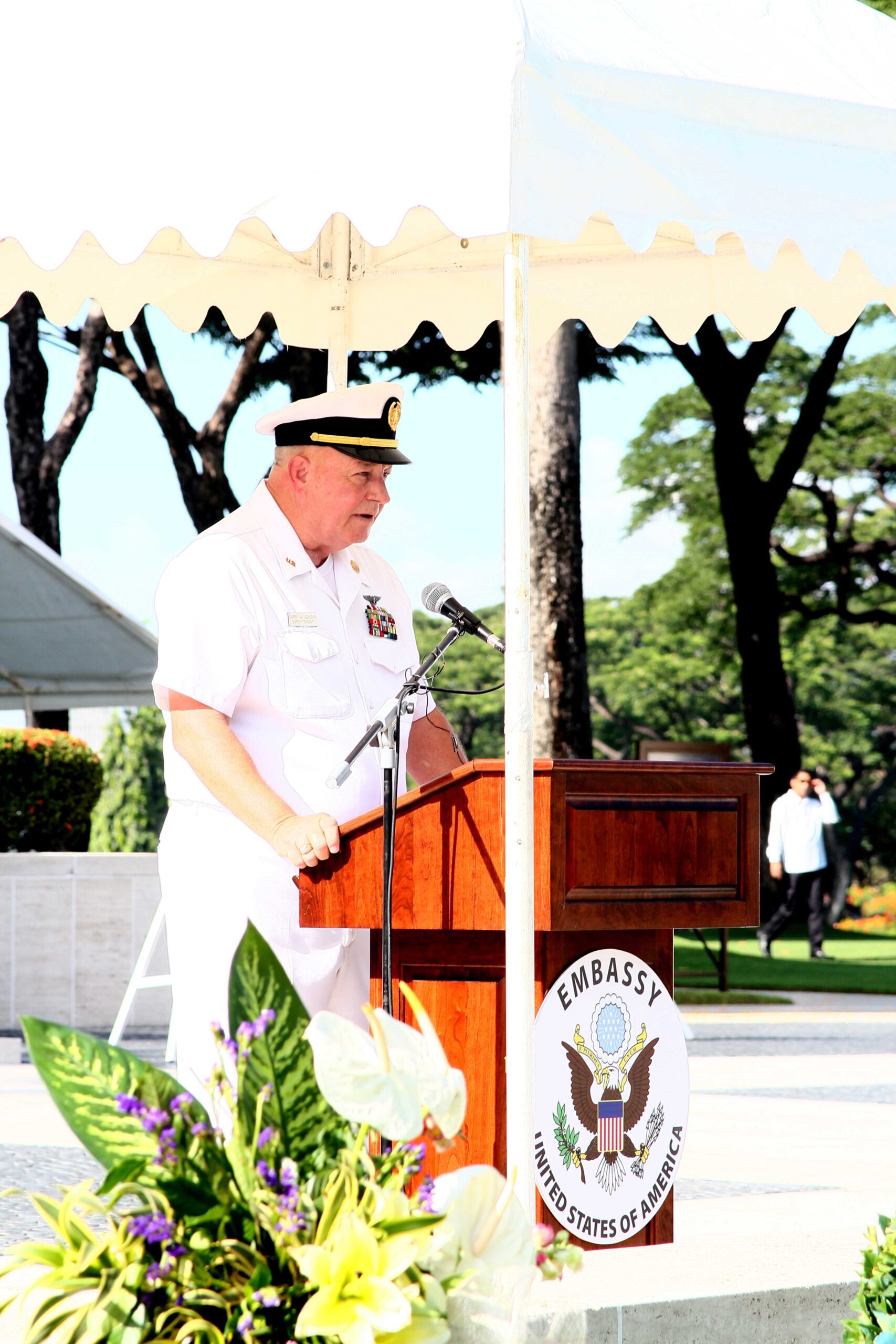 Manila American Cemetery Superintendent Larry Adkison delivers remarks during the 2014 Memorial Day Ceremony.