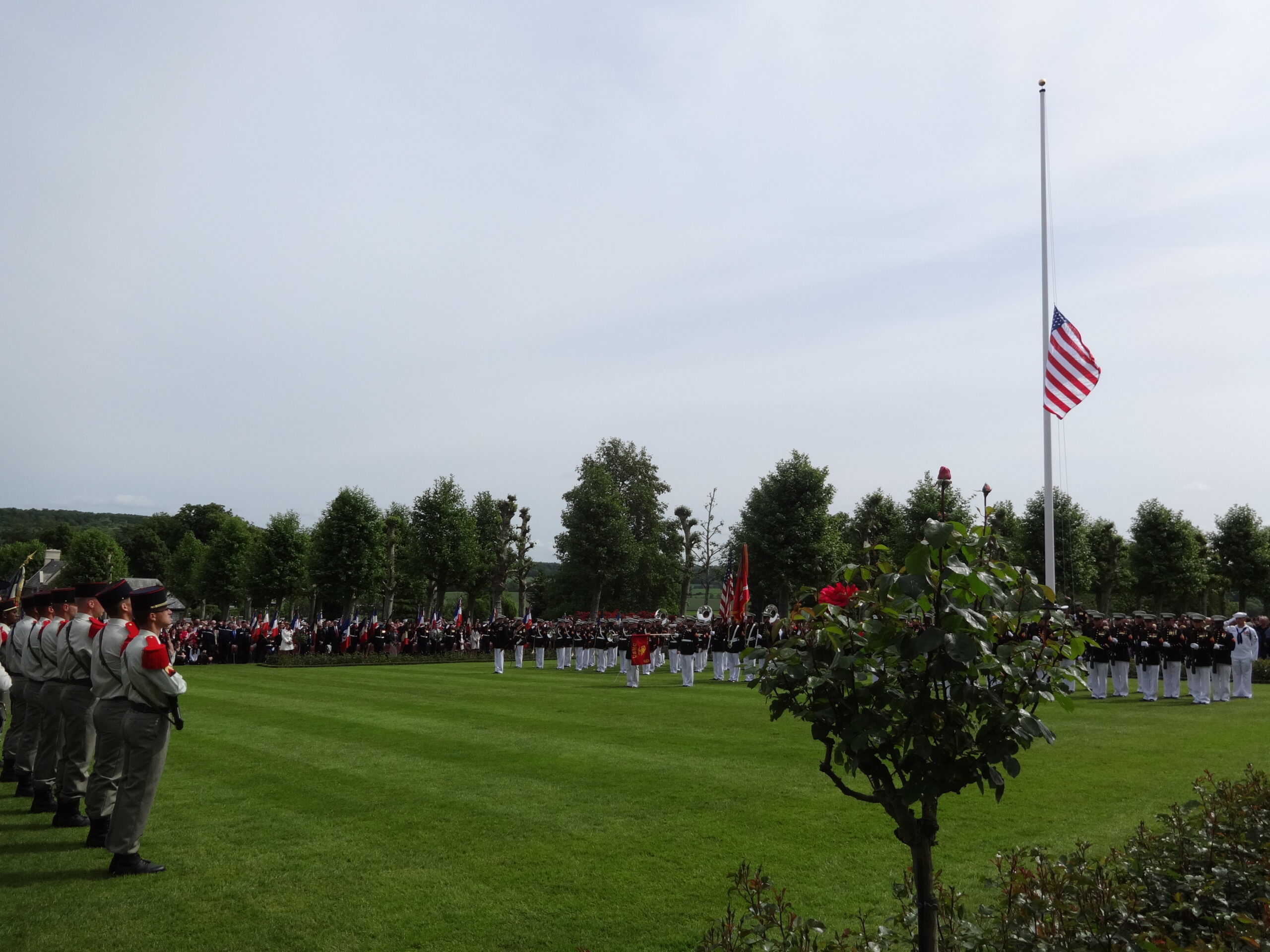 The flag flies at half staff during the during the 2014 Memorial Day Ceremony at Aisne-Marne American Cemetery in France.