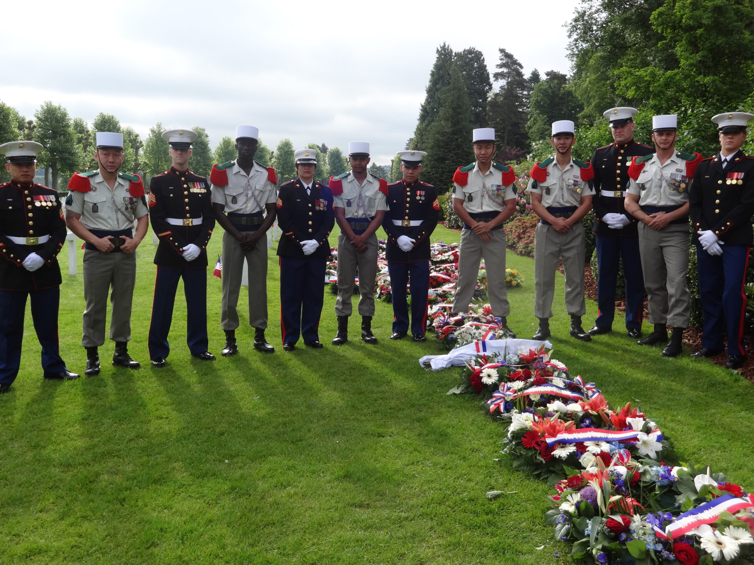 Marines and French Legionnaires participated in the 2015 Memorial Day Ceremony at Aisne-Marne American Cemetery. Image courtesy of Micheline and Daniel Atkinson.