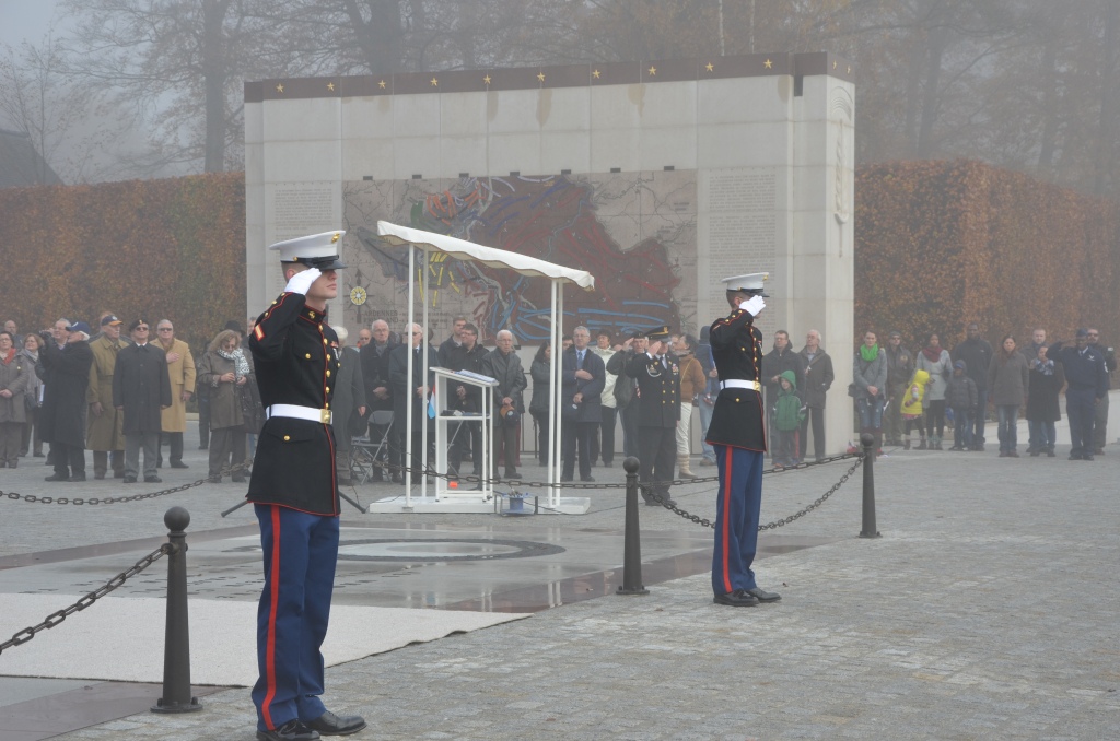 Marines salute during the 2013 Veterans Day Ceremony at Luxembourg American Cemetery.